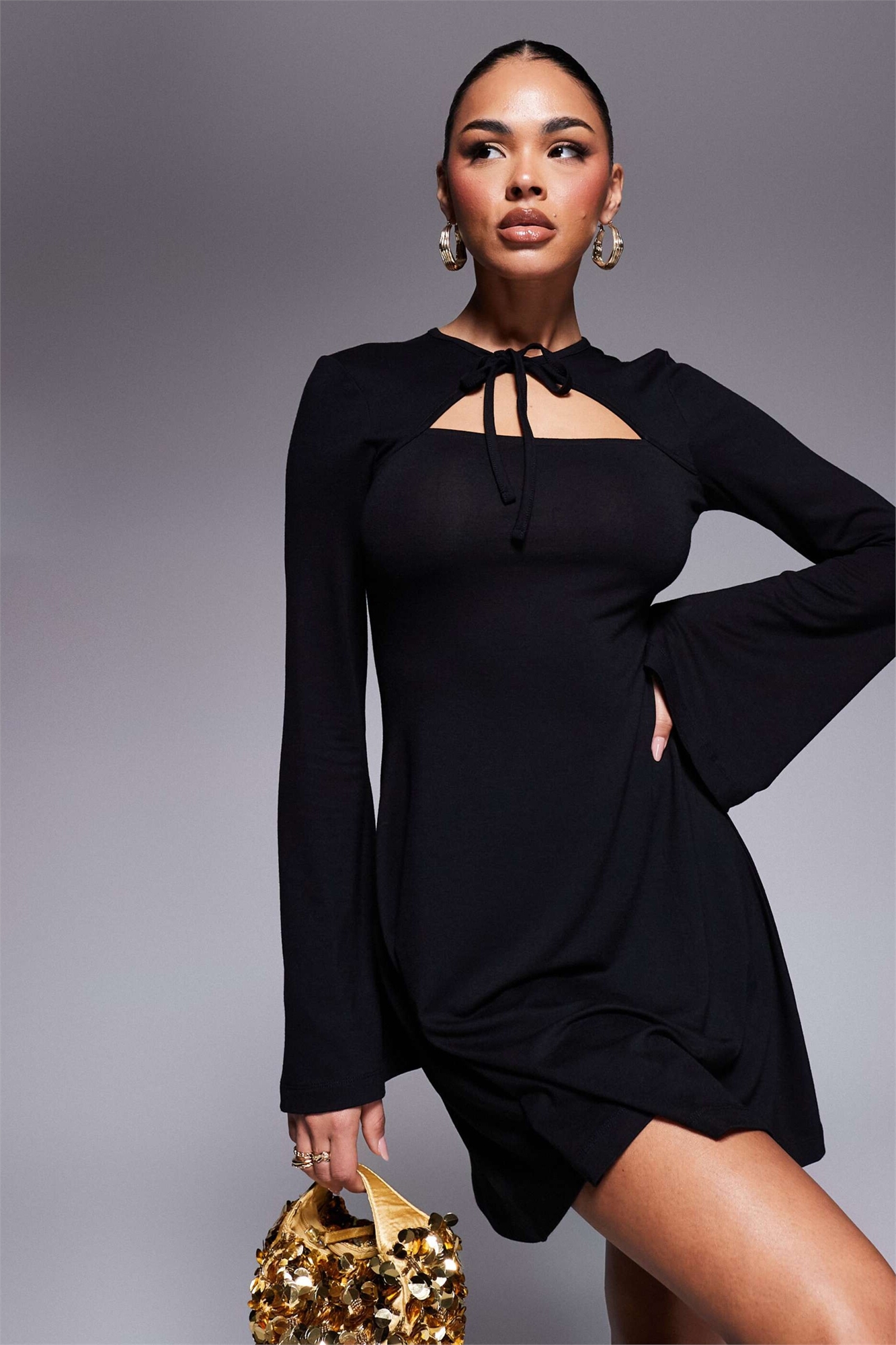Мини-платье с завязками на шее и вырезом