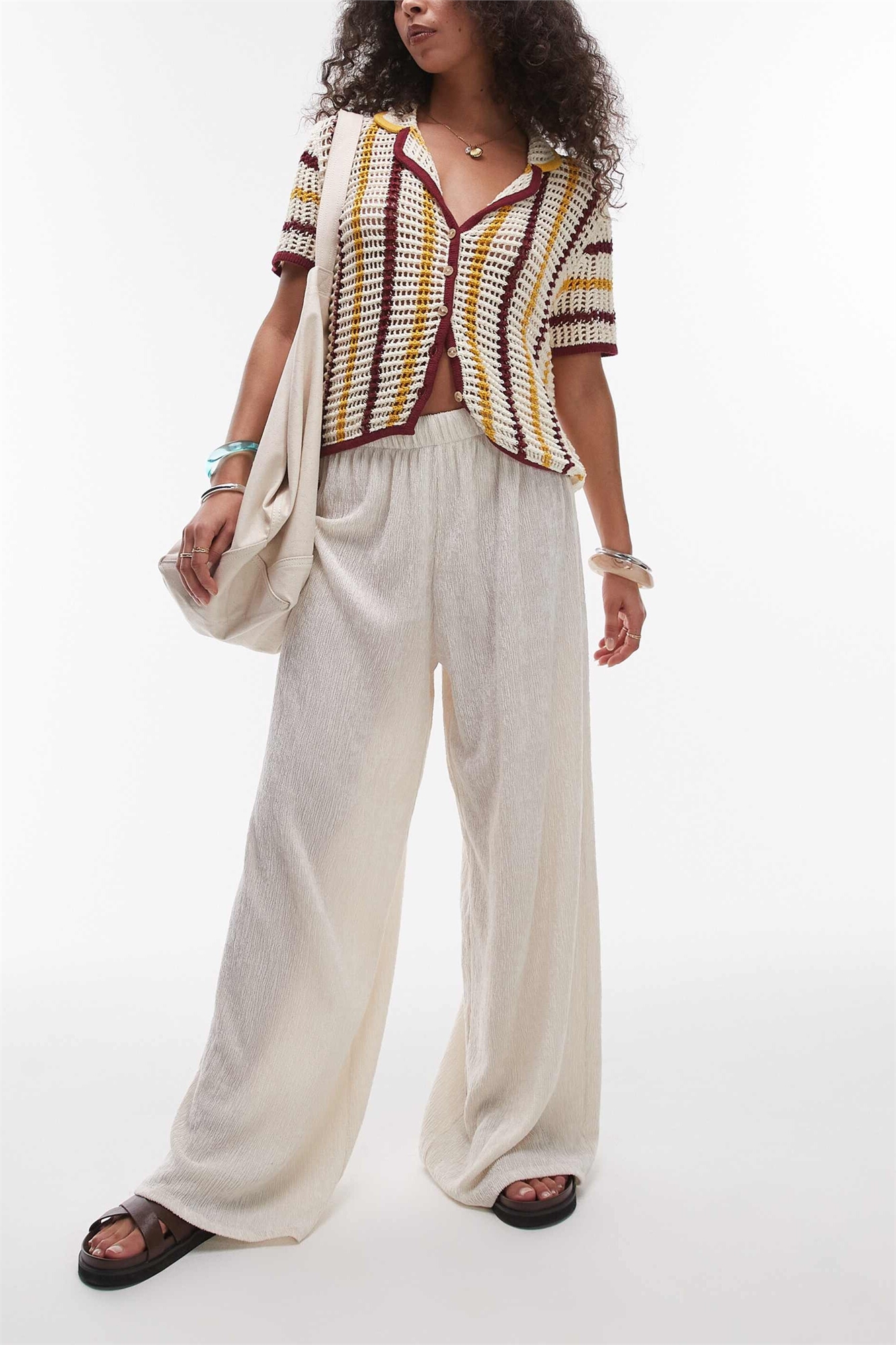 Брюки с широкими штанинами и фактурной поверхностью