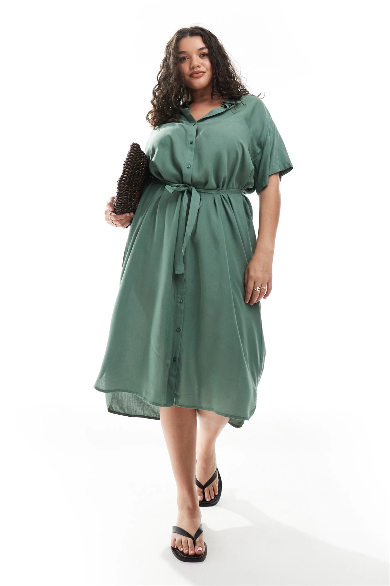 Платье-миди из рубашечной ткани с поясом-завязкой