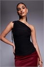 Эксклюзивный двухслойный топ с одним плечом и облегающим кроем