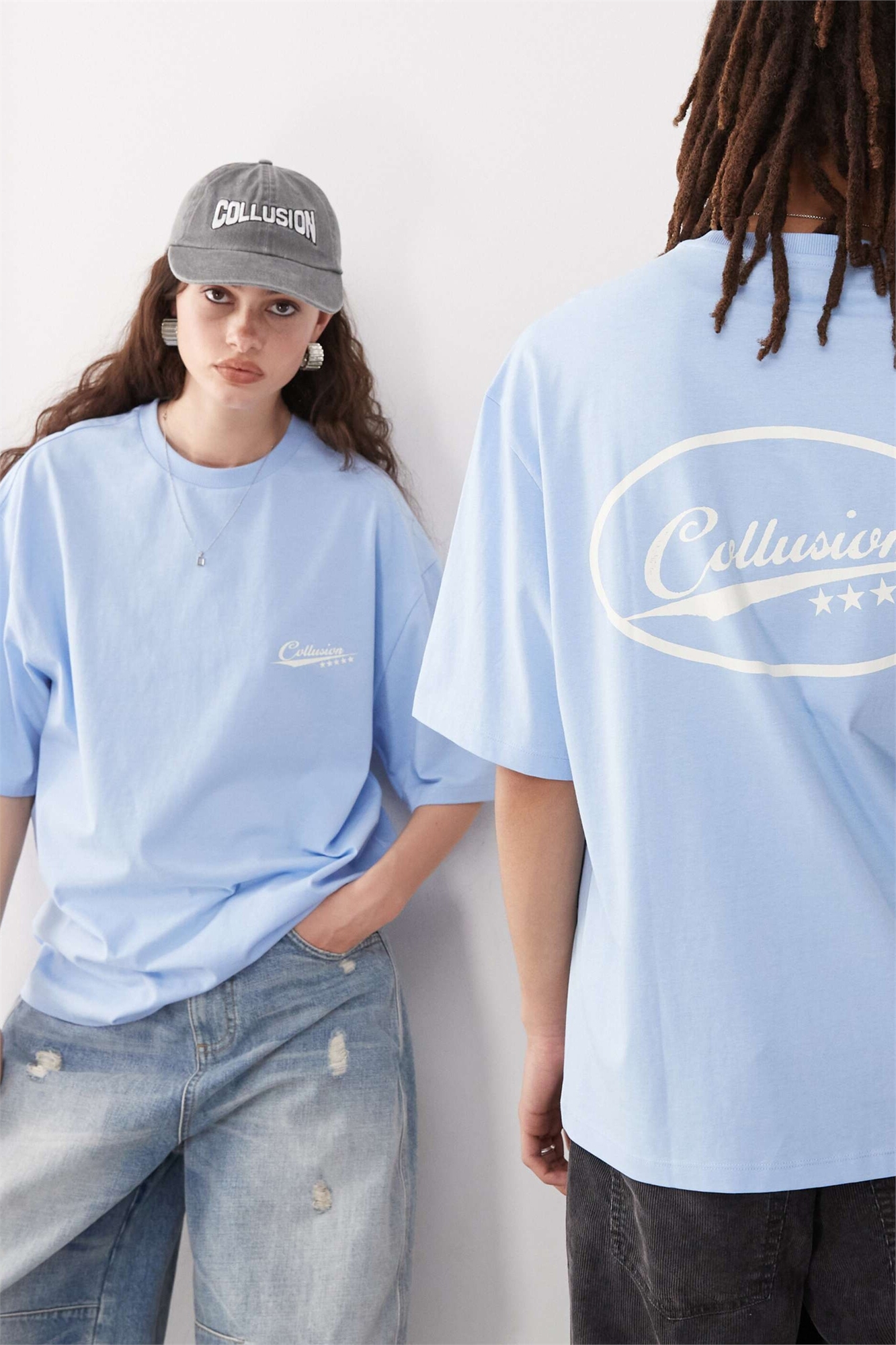 Унисекс футболка синего цвета с принтом, крой «скейтер»