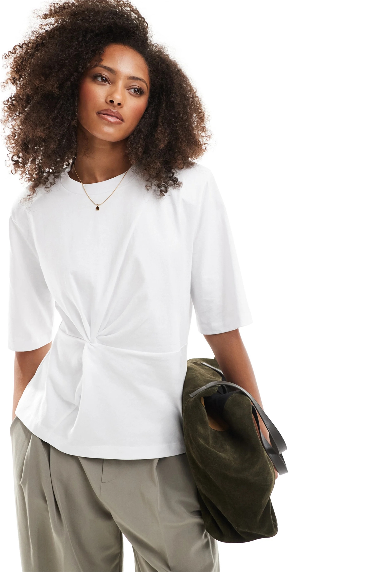 Футболка свободного кроя с закрученными деталями и плечевыми накладками