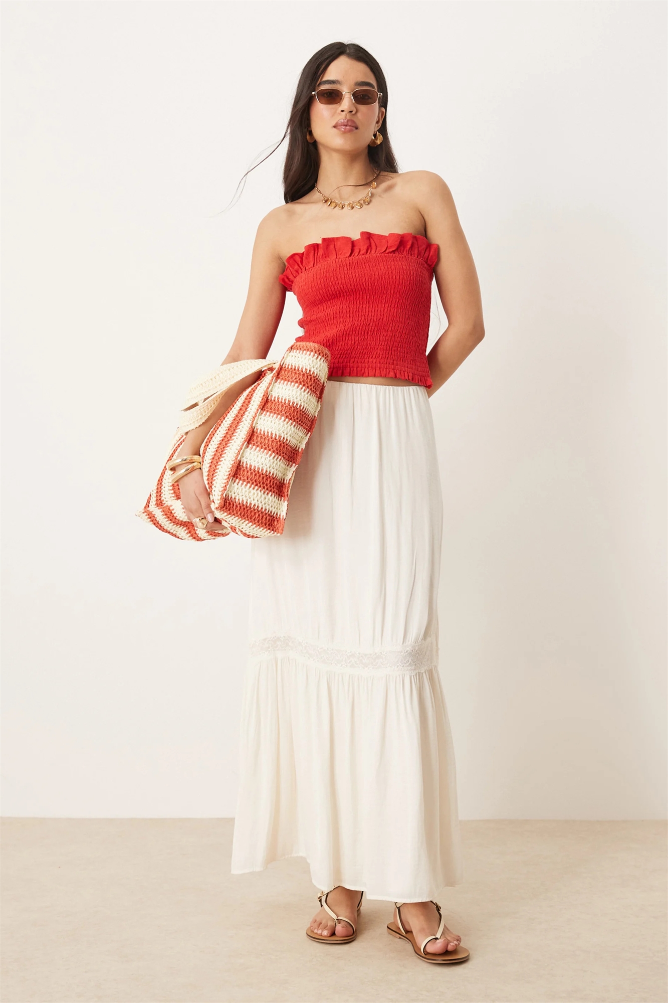 Многослойная юбка макси с кружевной вставкой