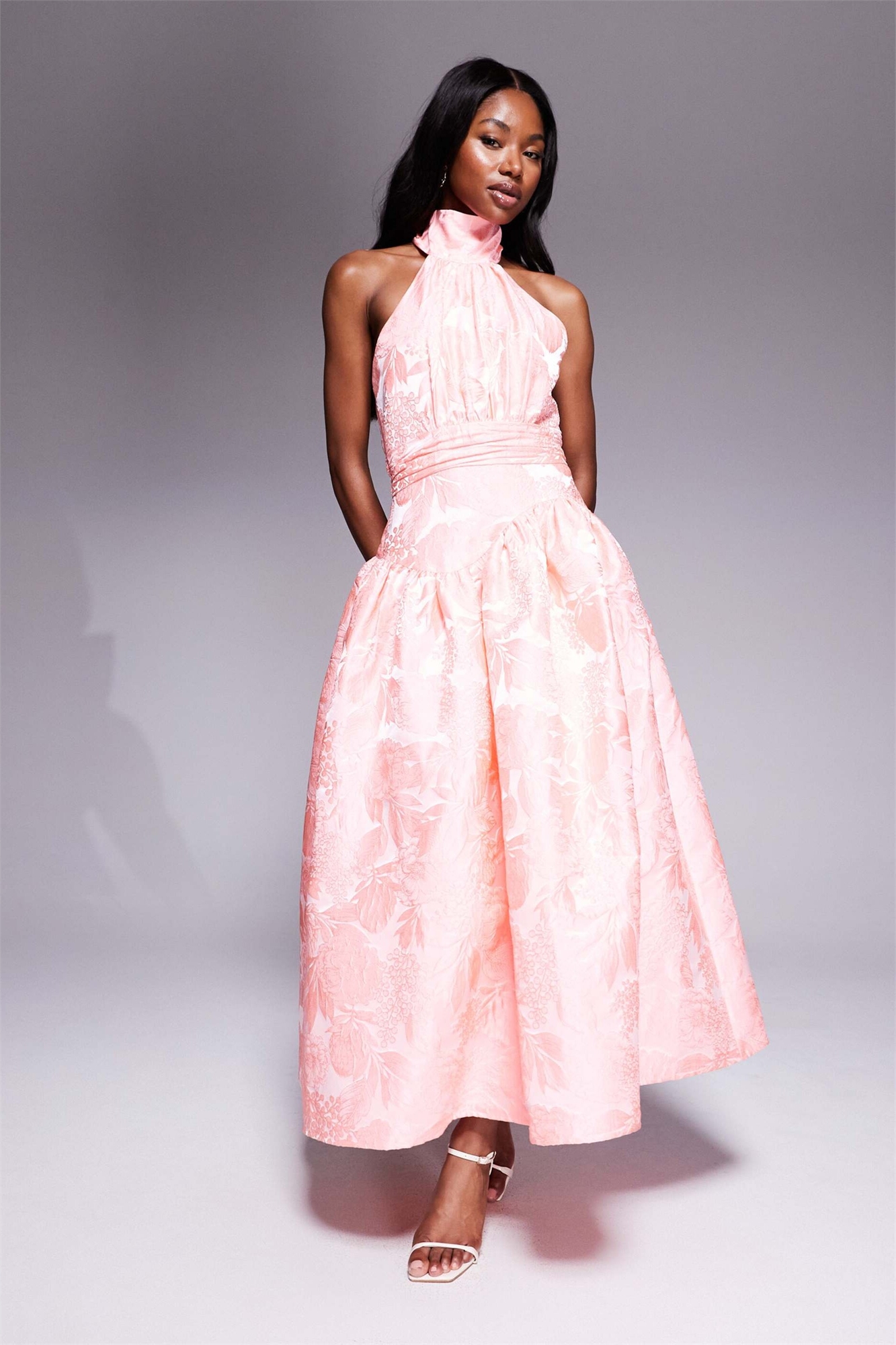 Макси-платье из жаккарда с бантиком