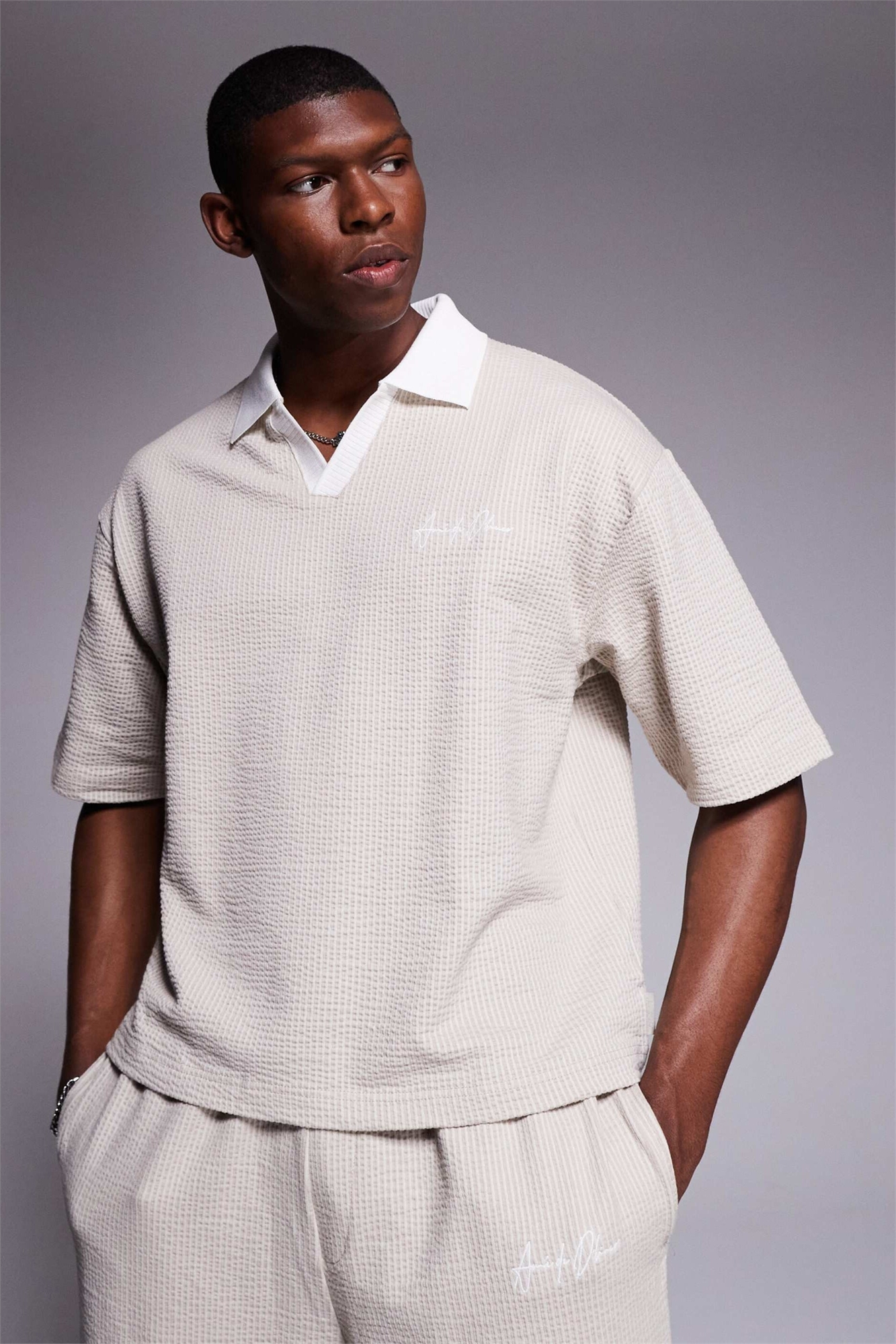Поло с открытым воротником и фактурной текстурой co-ord