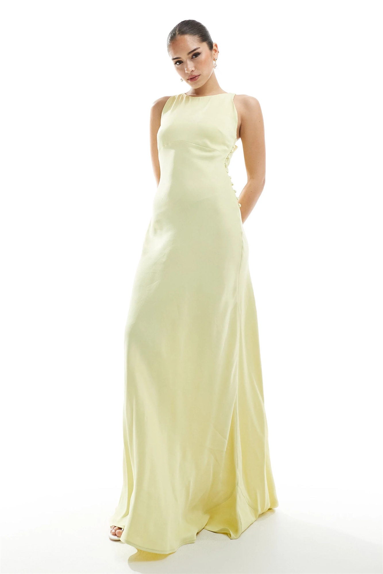 Макси-платье для подружки невесты с высоким воротником и завязками на спине