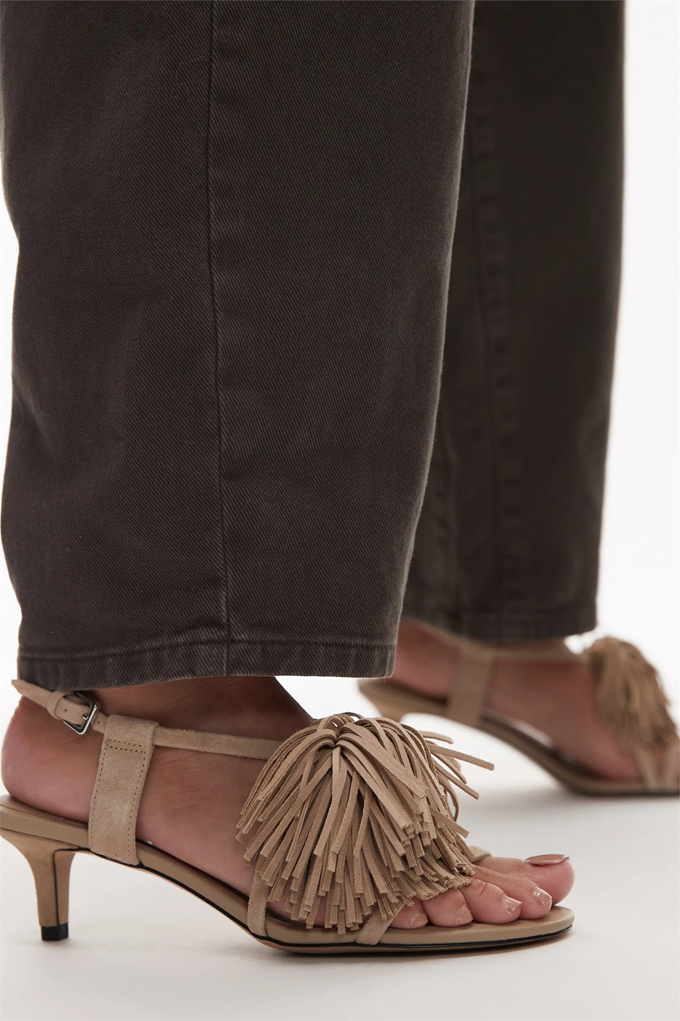 Кожаные туфли-слингбеки с открытым носком на низком каблуке и бахромой в виде помпонов