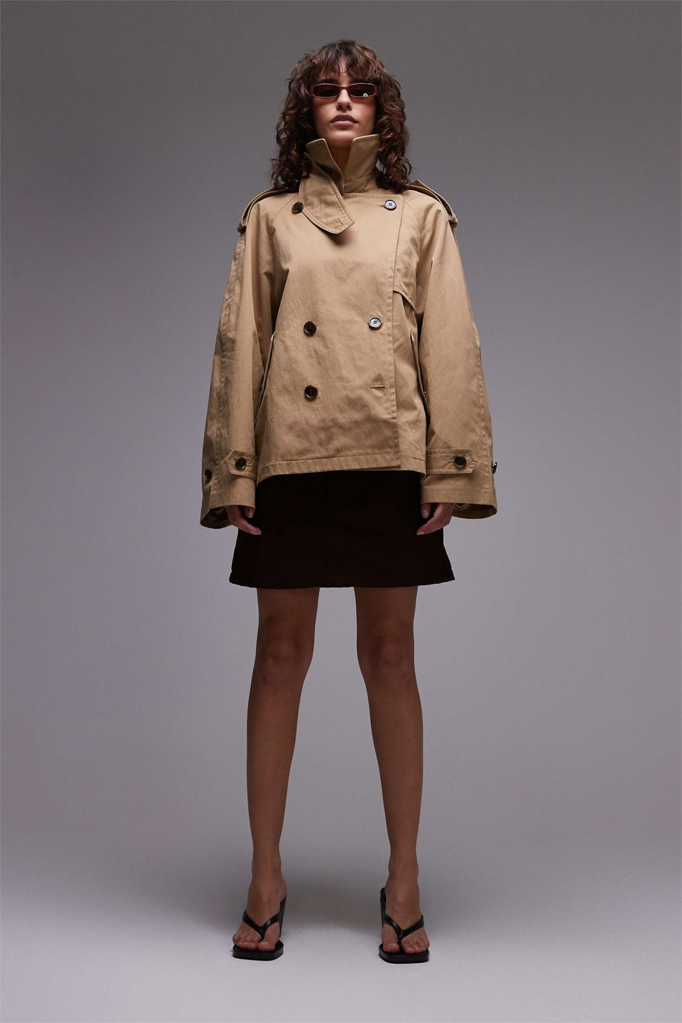 Укороченный практичный тренч с ветрозащитной клапаной