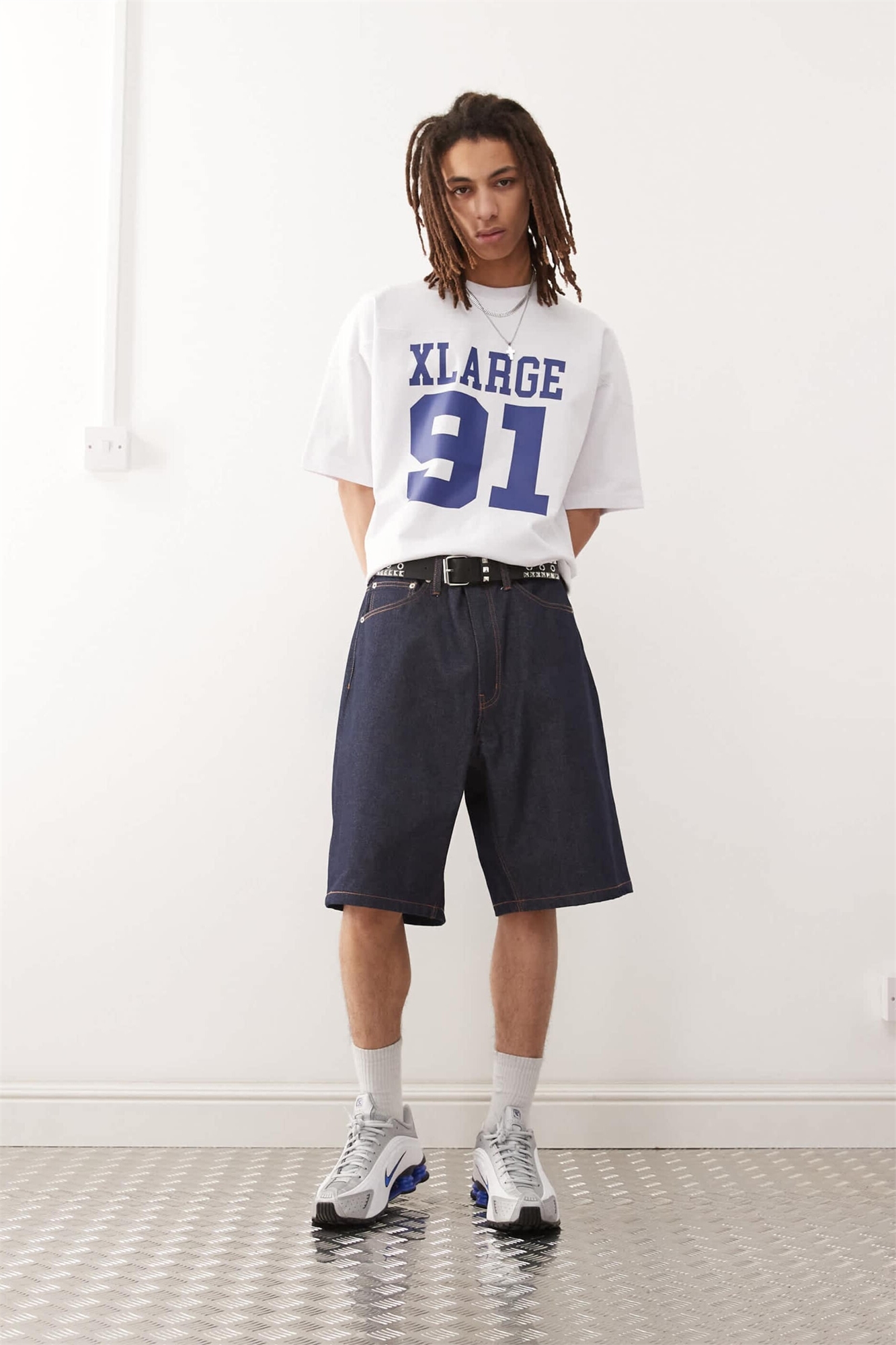 Широкие джинсовые шорты с вышитым логотипом OG на заднем кармане