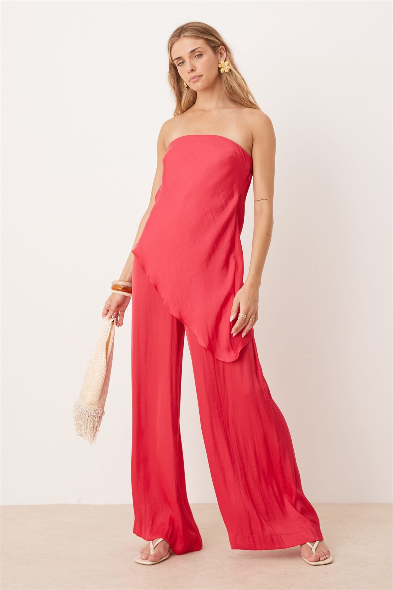 Комбинезон с бандо из атласа и асимметричной накладкой