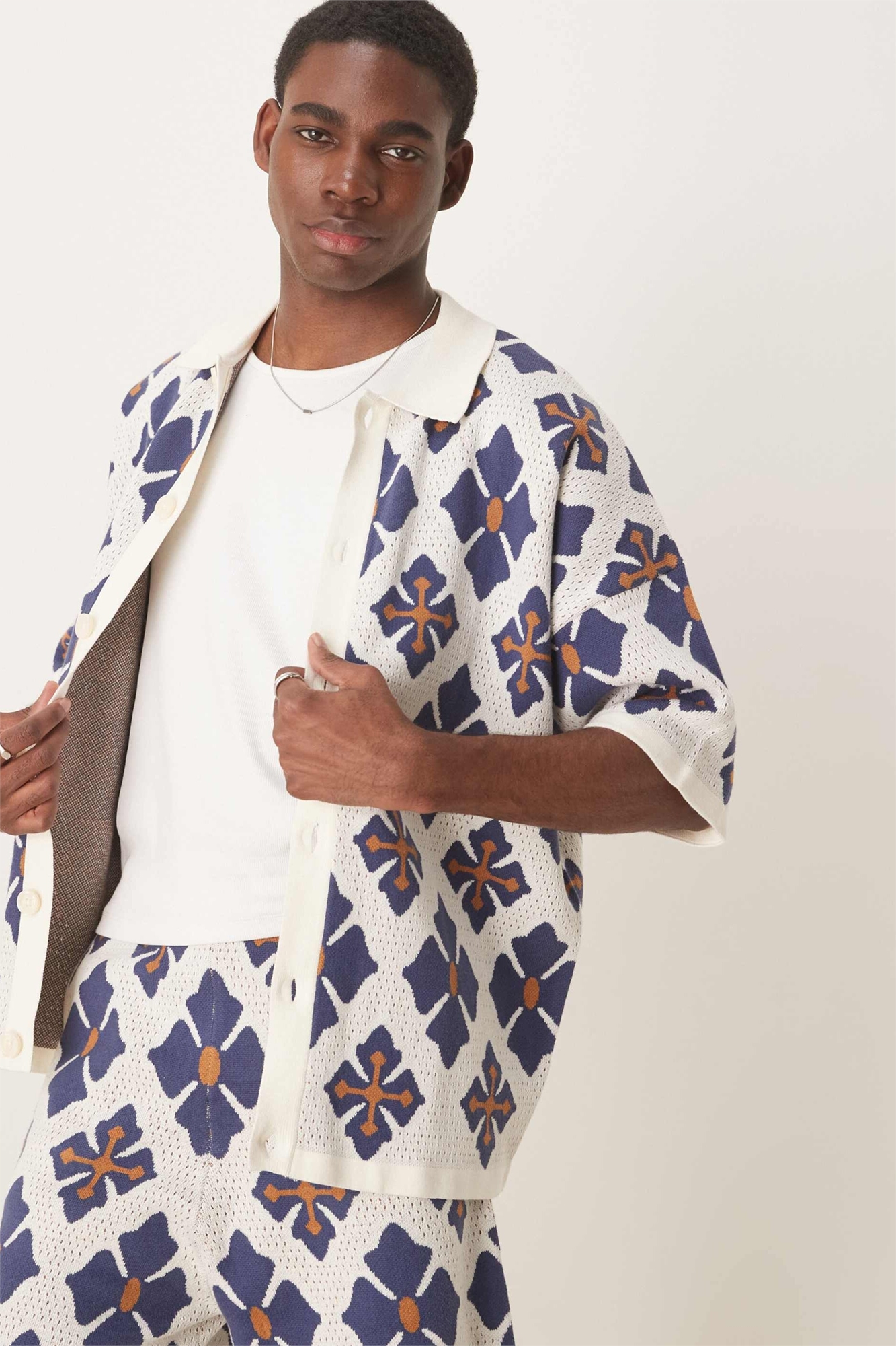 Полурубашка из мягкого трикотажа на пуговицах с ацтекским узором co-ord