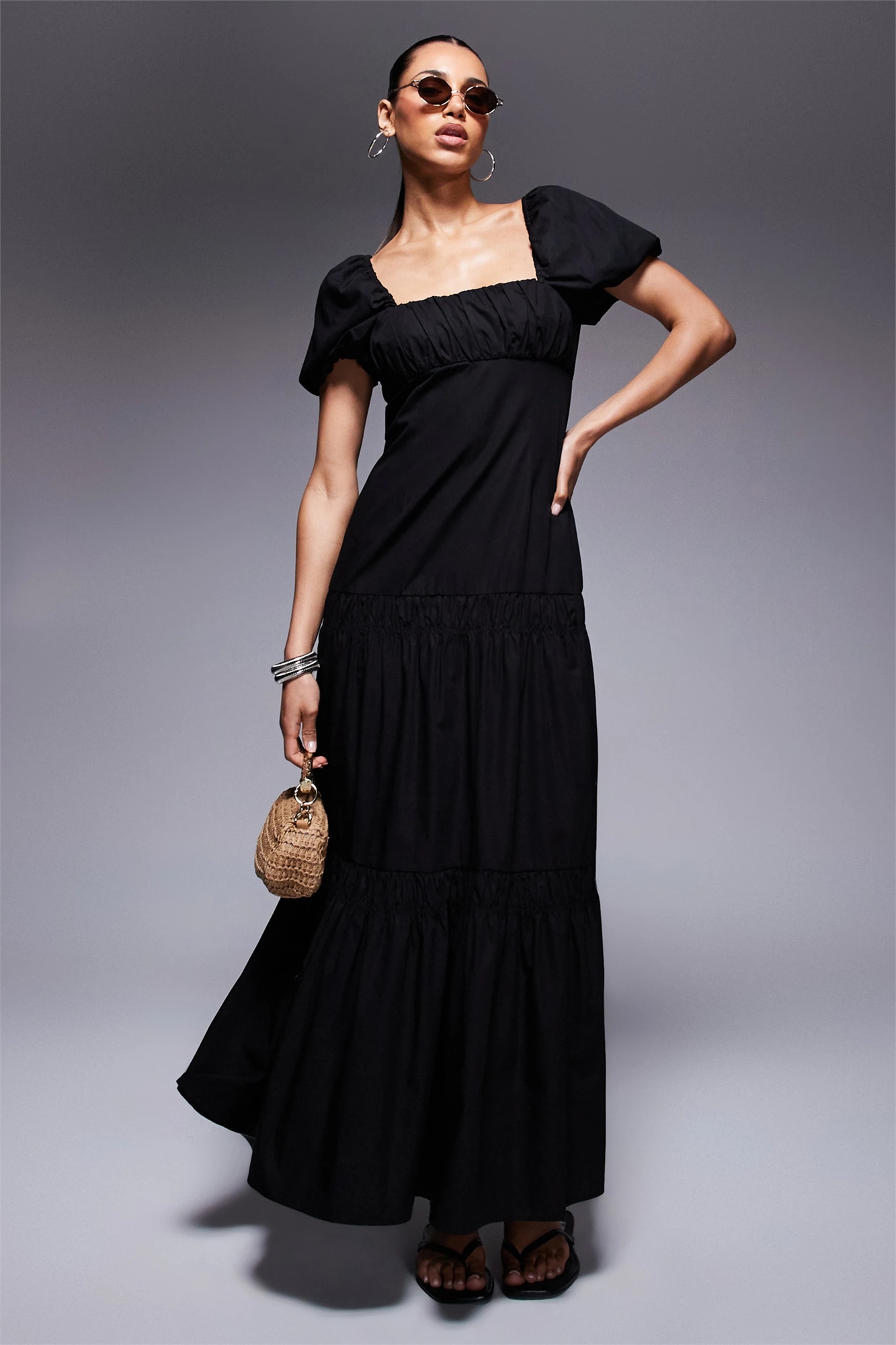Платье средней длины в стиле «домохозяйка» с буфчатыми рукавами