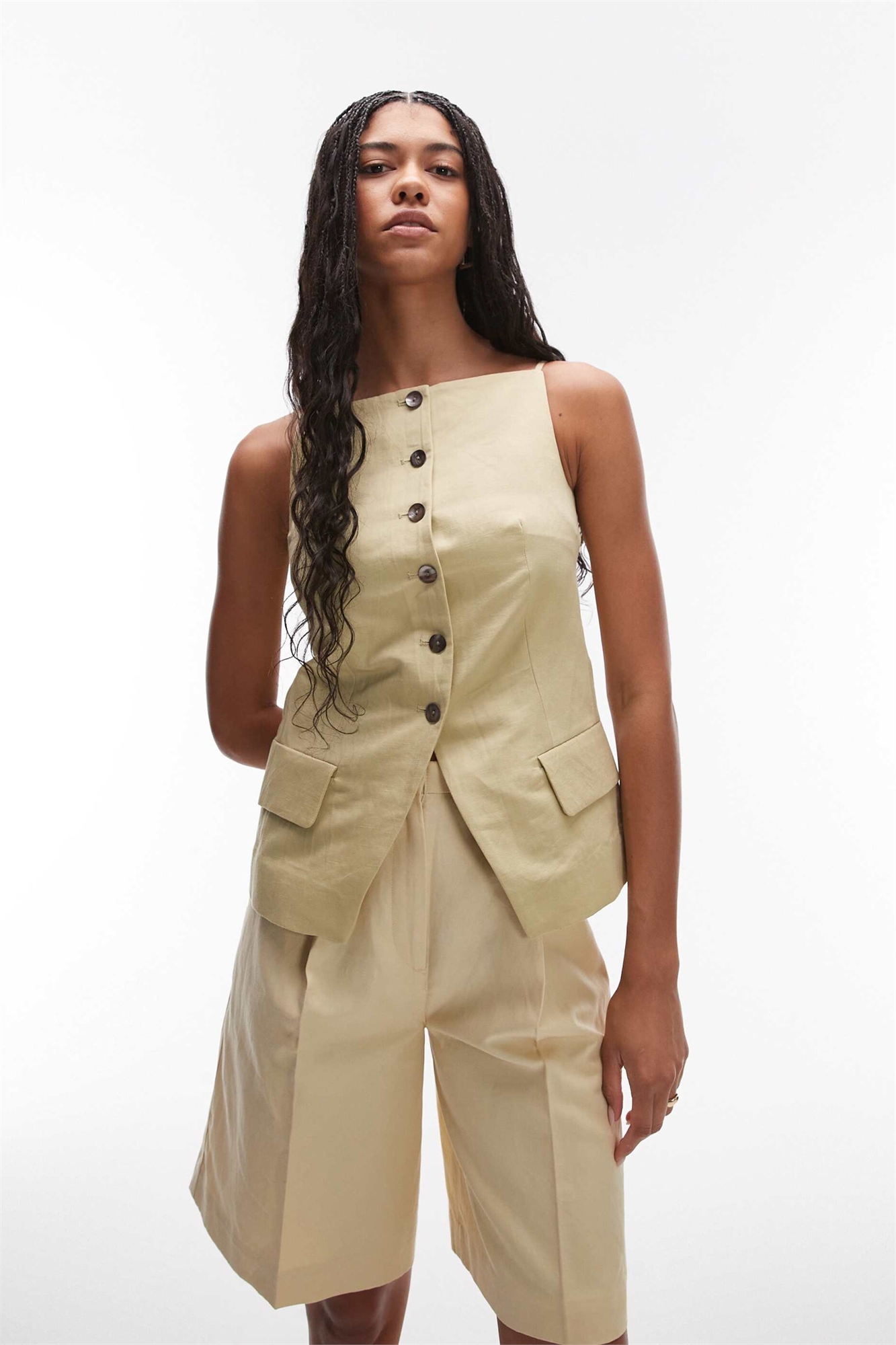 Топ-жилет с квадратным вырезом из смешанного льна