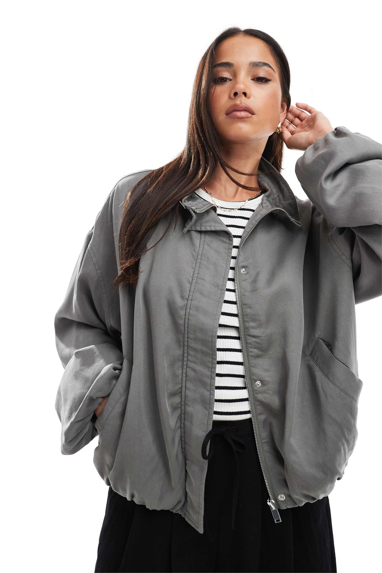 Куртка с воротником-воронкой и рюшами из выстиранной ткани