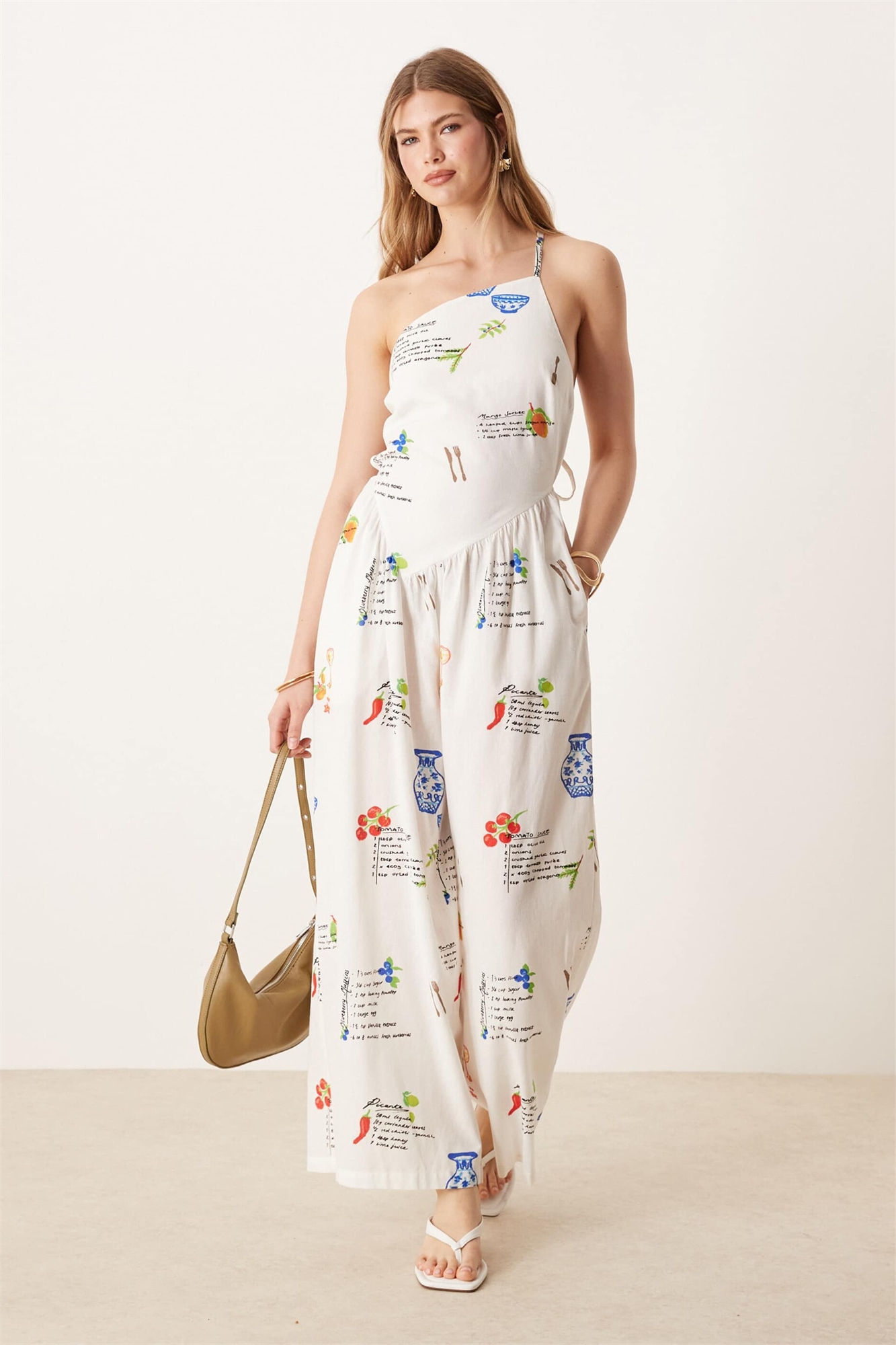 Льняной комбинезон с одним плечом и открытой спиной, с принтом, вызывающим разговор