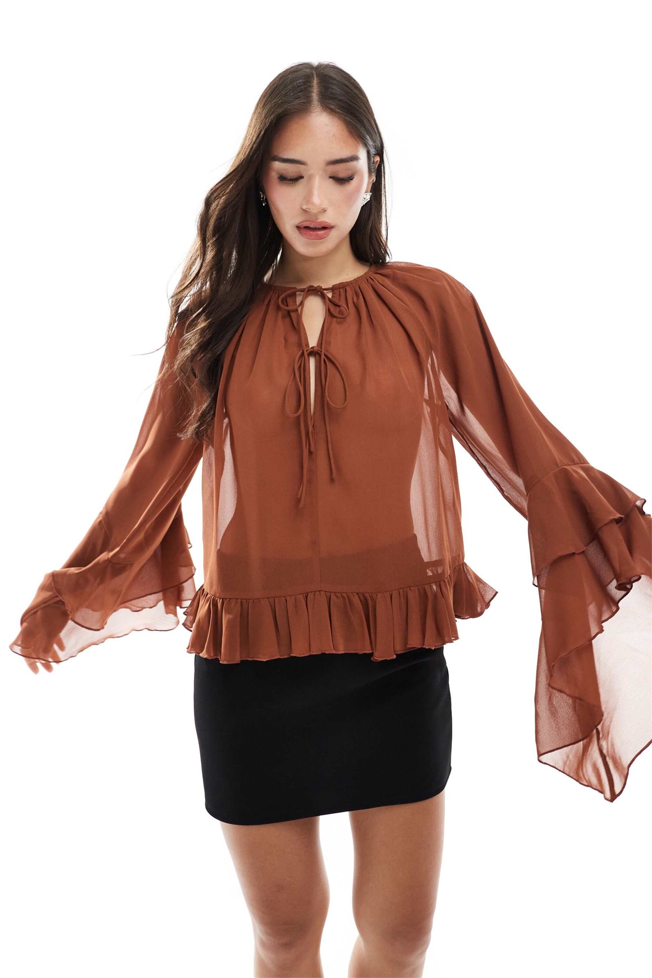 Легкий топ с завязками на шее и рукавами с оборками