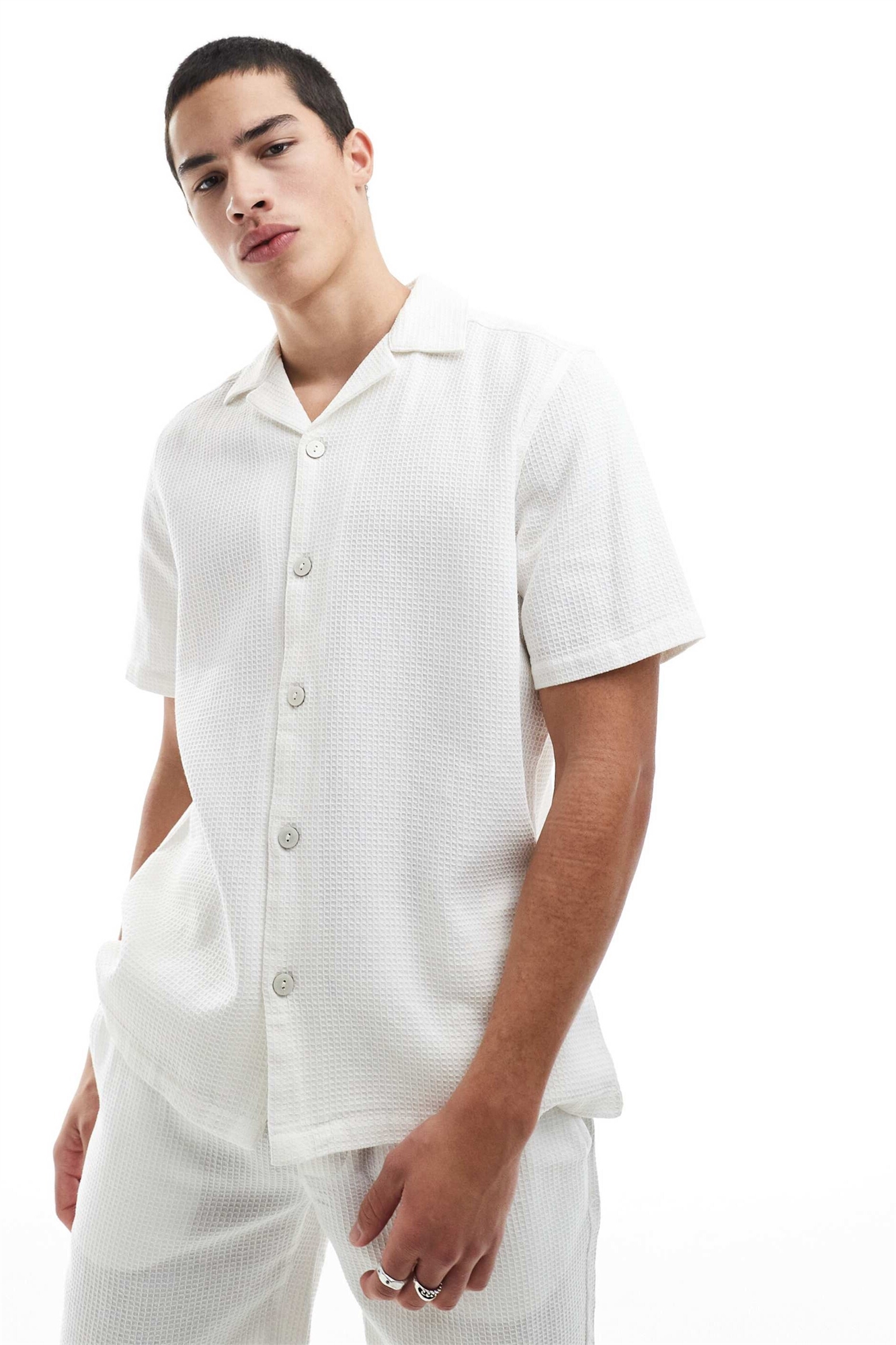 Рубашка свободного кроя с вафельной текстурой co-ord