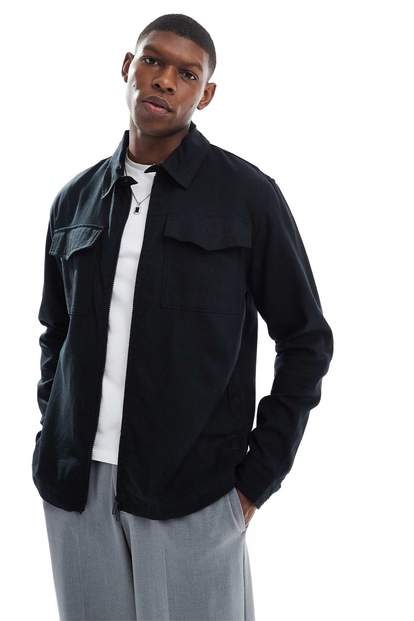 Льняная рубашка-оверсайз с двумя карманами от French Connection