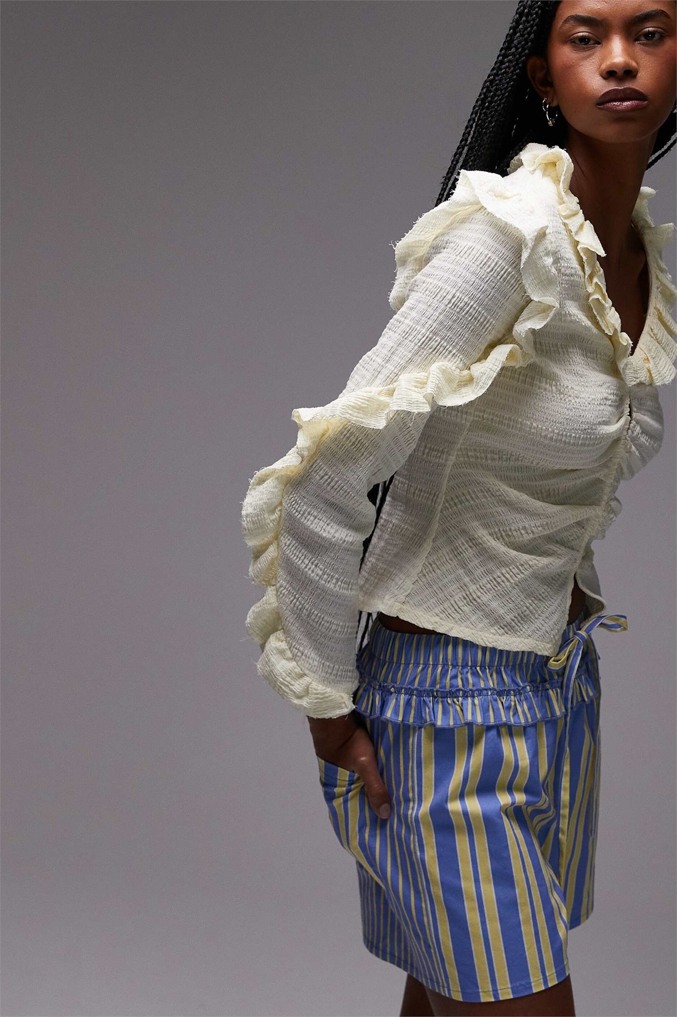 Блузка с текстурной оборкой спереди и застежкой на пуговицы