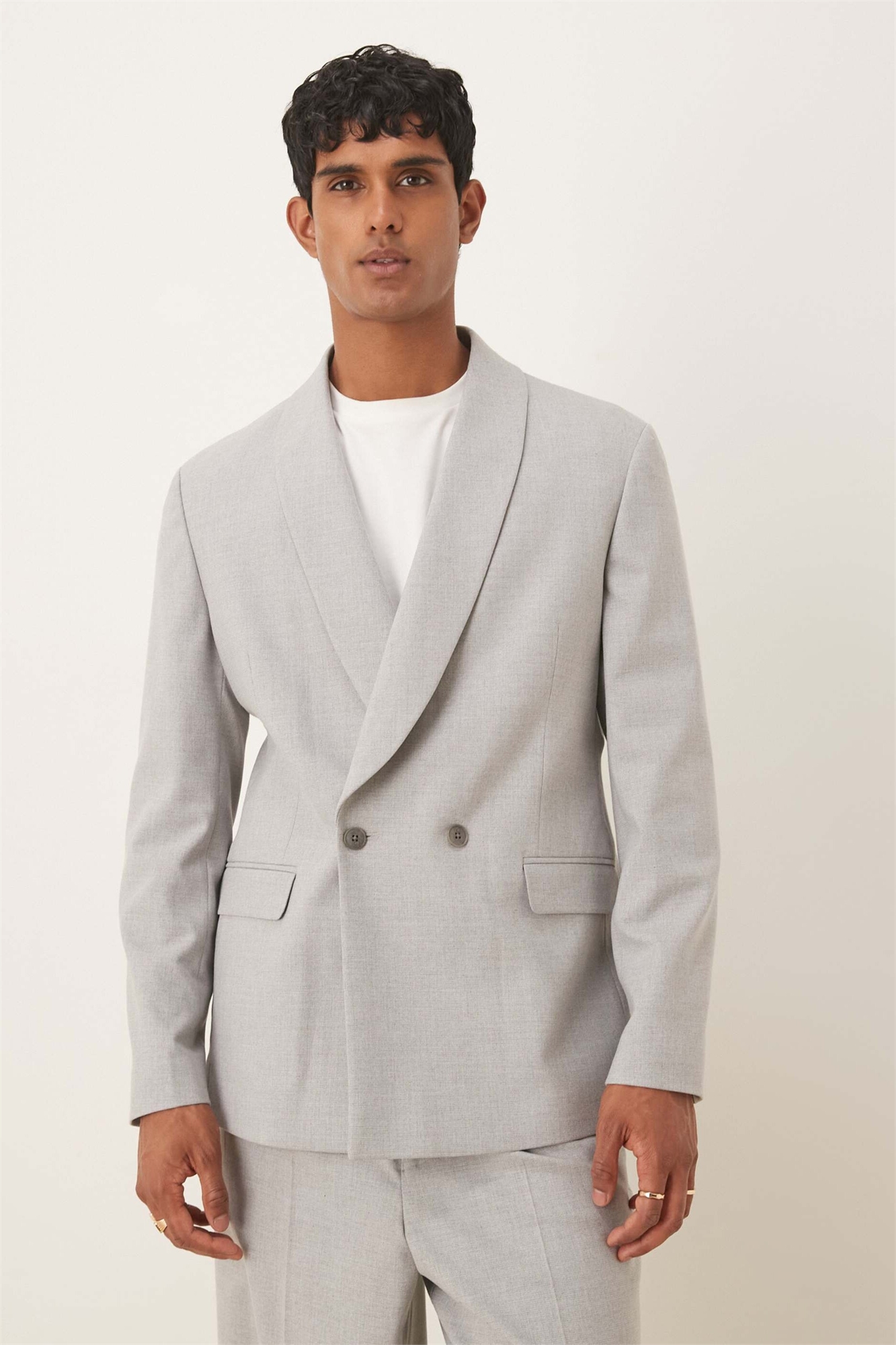 Двубортный пиджак с шалевым воротником серого цвета