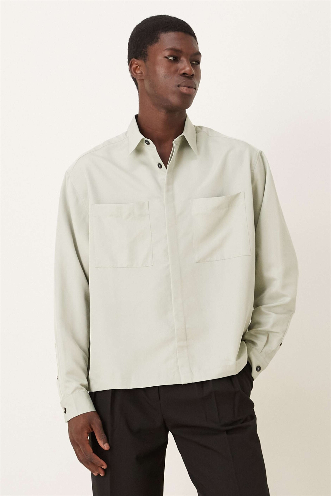 Рубашка свободного кроя с длинными рукавами и воротником-ревер