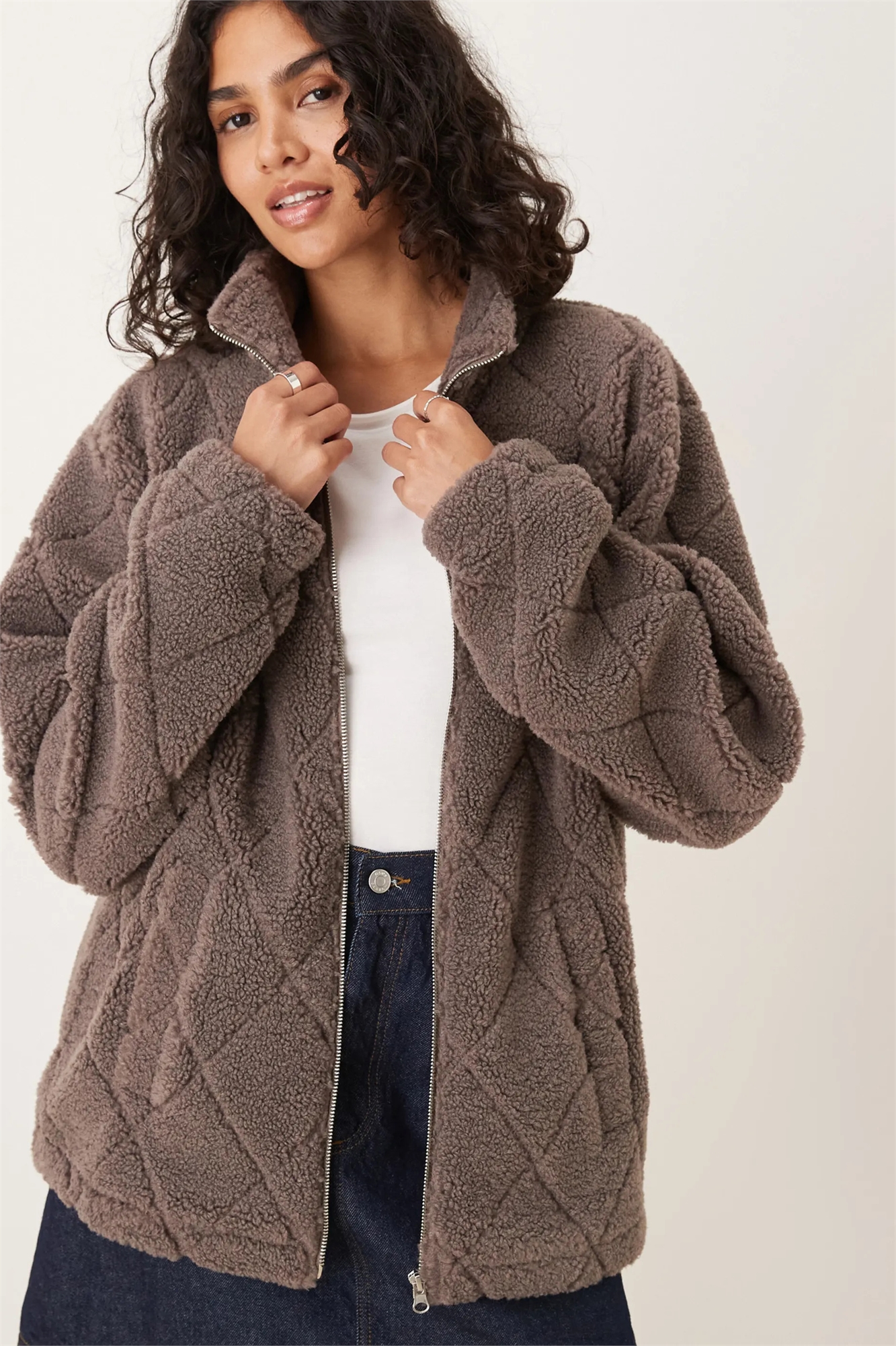 Флисовая куртка с стеганым боргом и полной застежкой-молнией