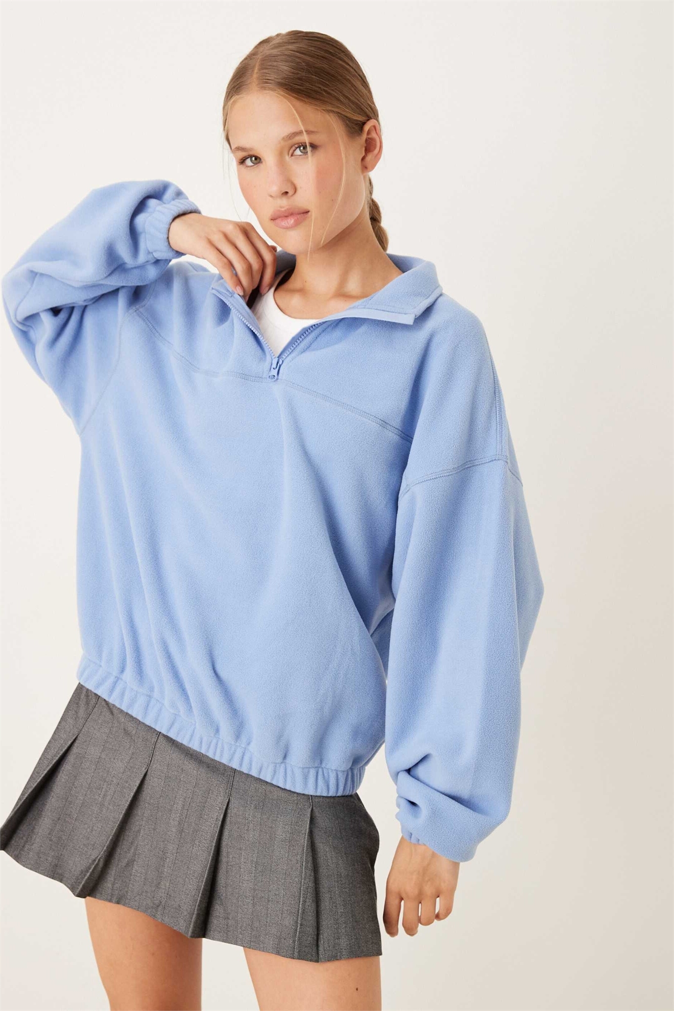 Флисовая кофта с полузастежкой-молнией, темно-синего цвета