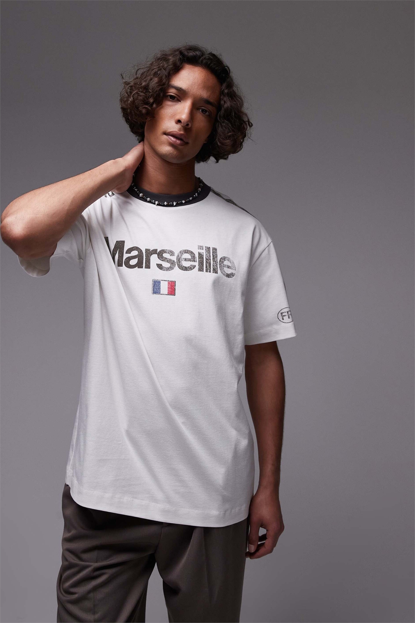 Футболка свободного кроя с воротником-рингер и принтом «Марсель»