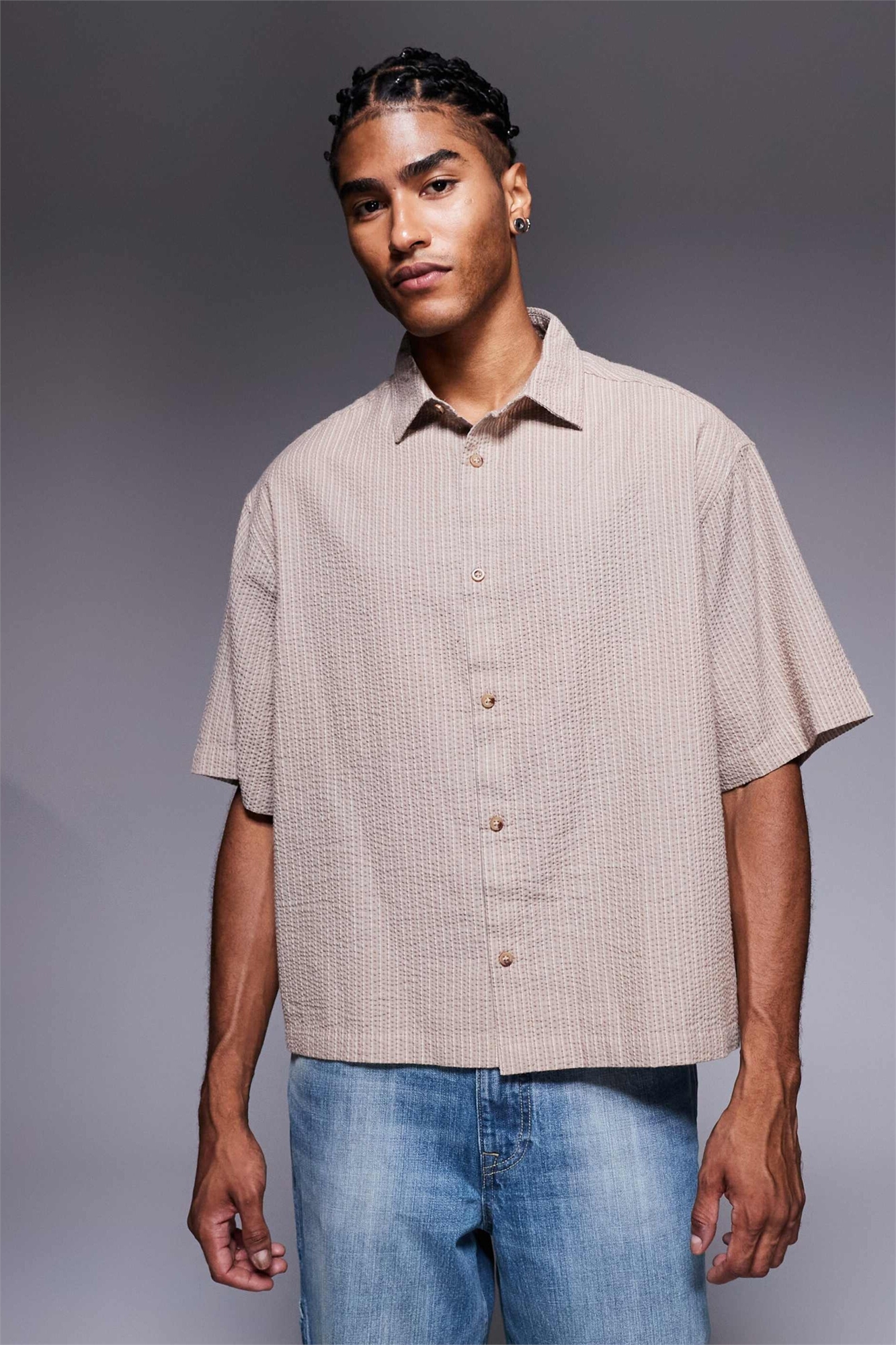 Рубашка свободного кроя с полосками из ткани «сирсакер»