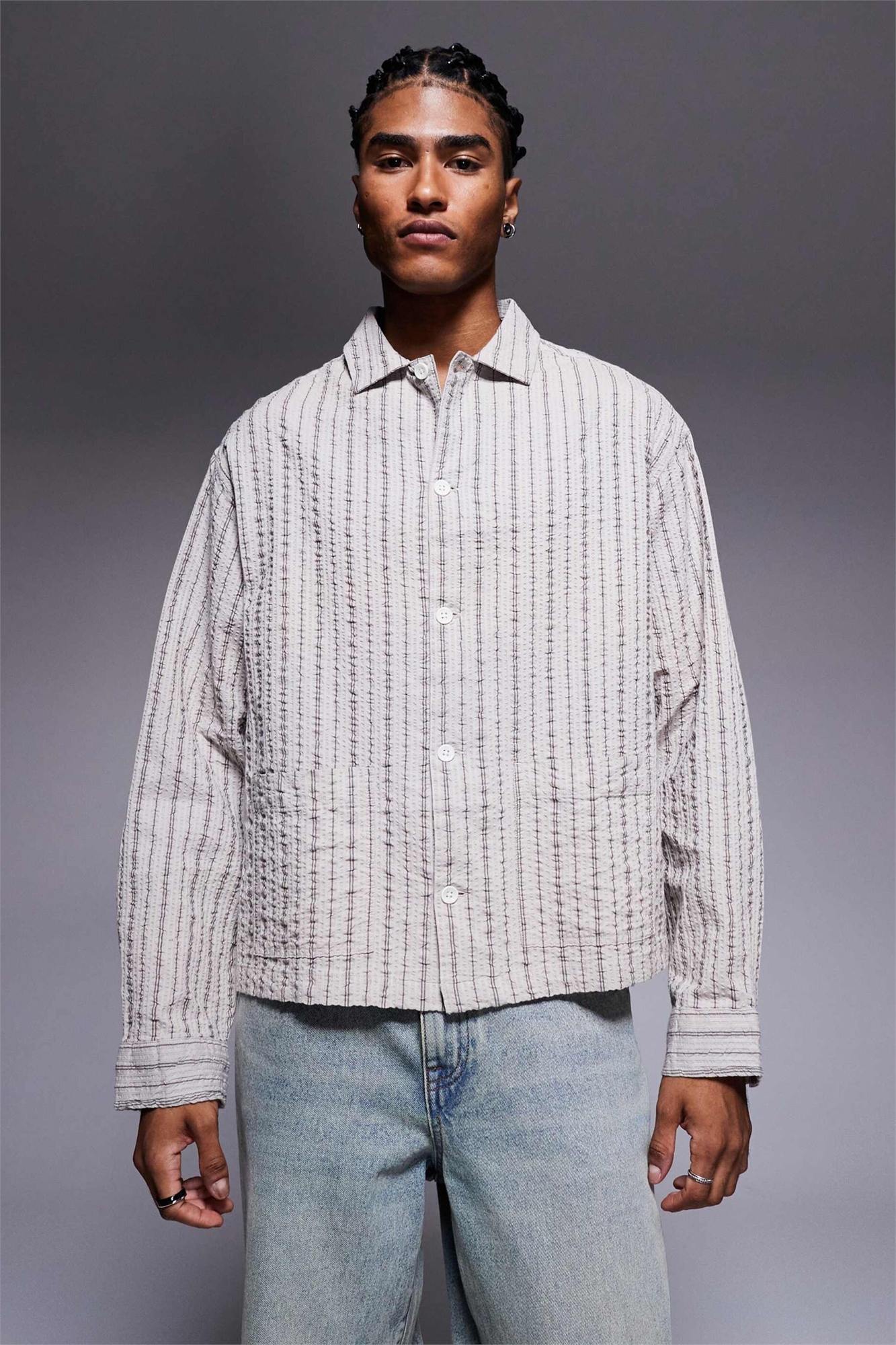 Рубашка свободного кроя с полосками из ткани «сирсакер»