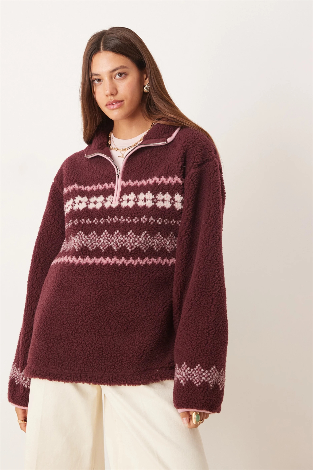 Флисовая кофта Borg с полузастежкой-молнией и вставками в стиле «фэйр-айл»