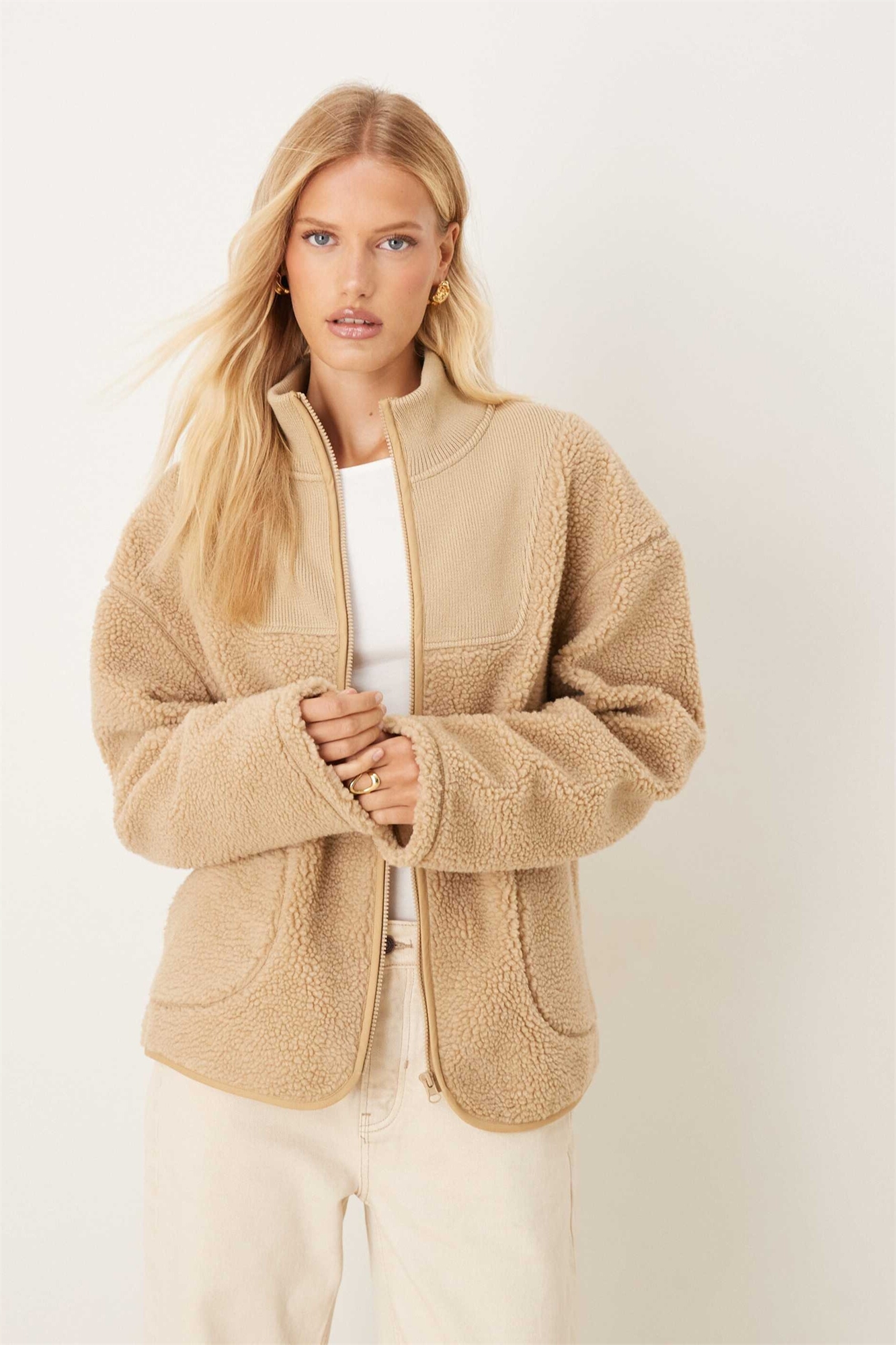 Куртка из смешанного материала: флис «борг» и трикотаж