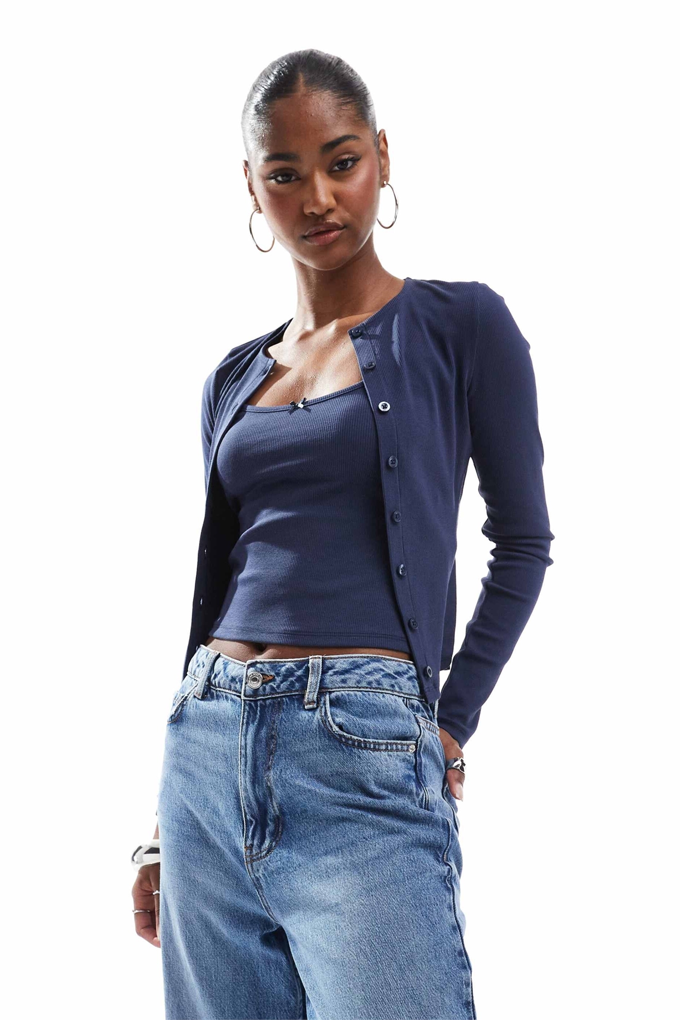 Комплект из кардигана с ребристой вязкой и топа-камизолы