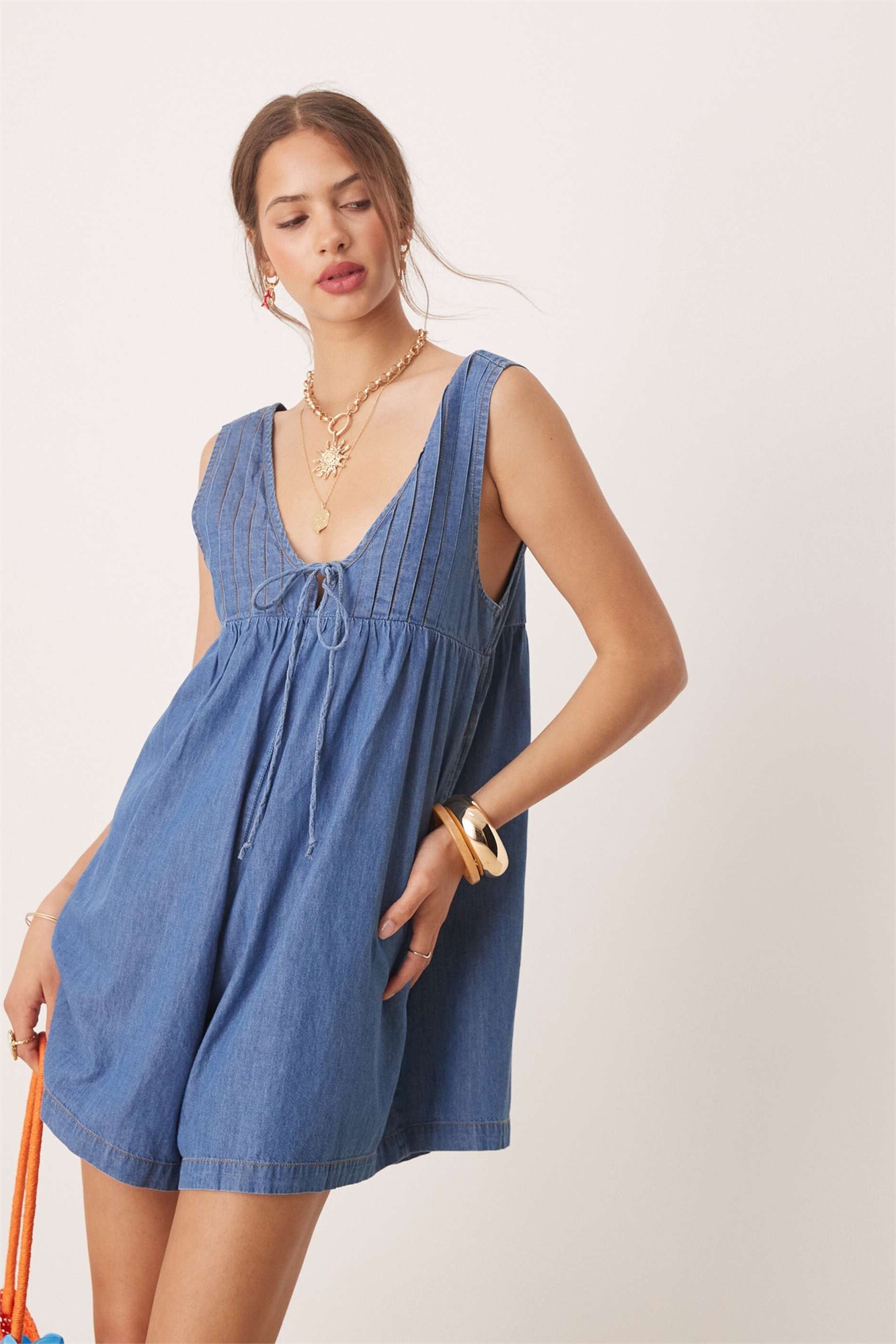 Джинсовый комбинезон с декоративными складками