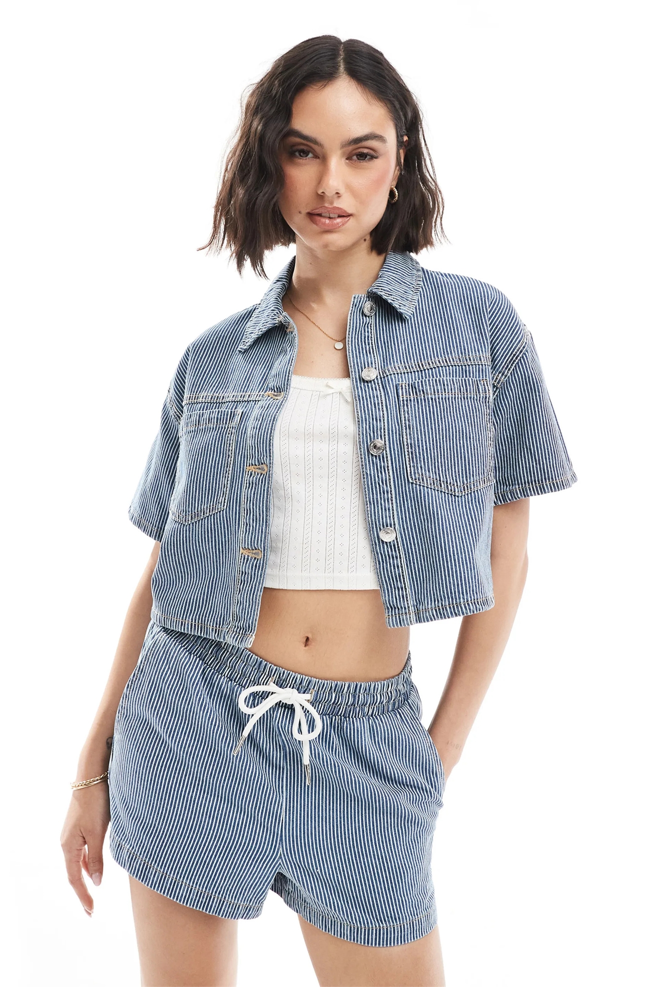 Рубашка из денима с прямоугольными полосками co-ord