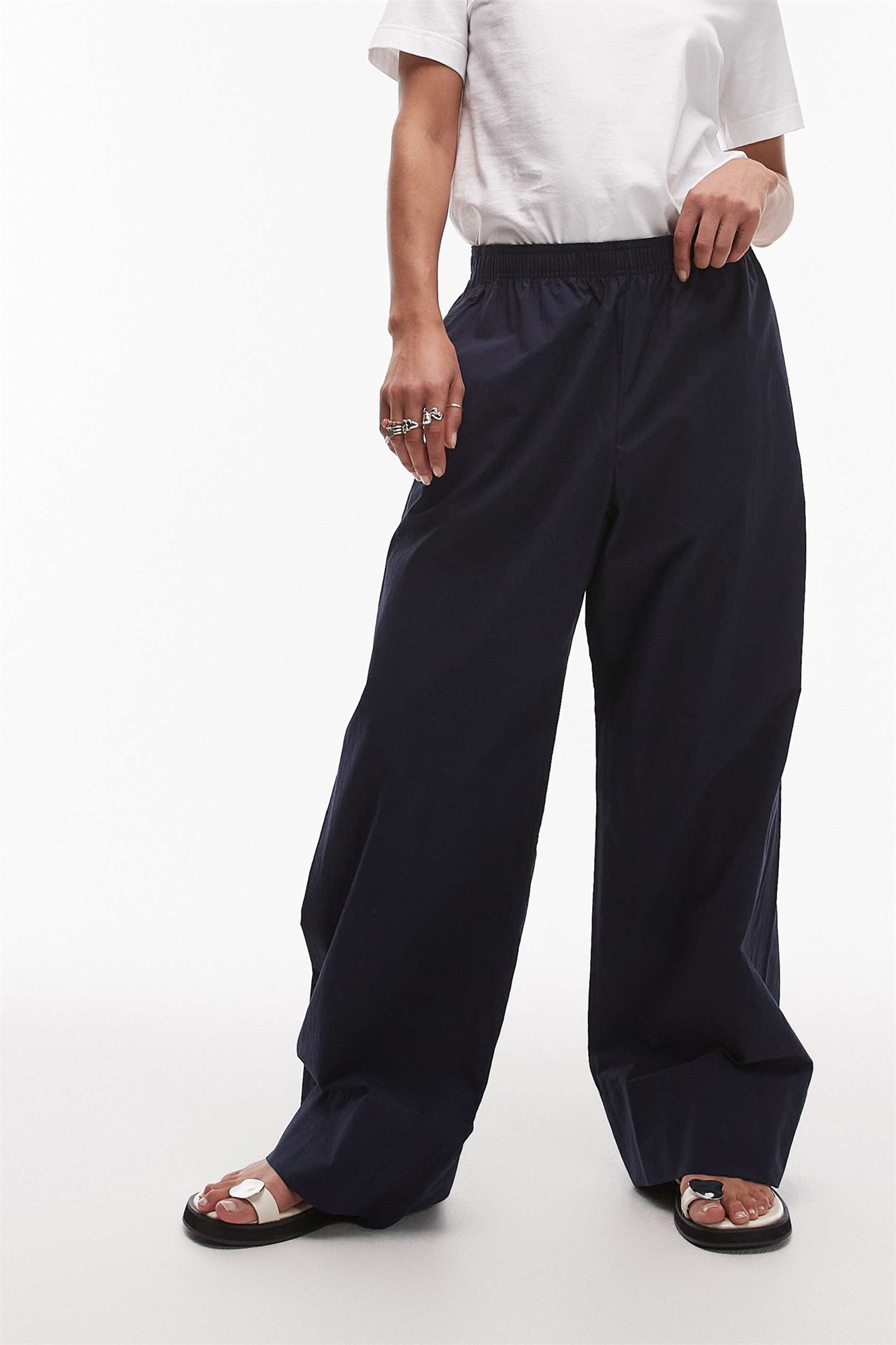 Брюки из поплина с прямыми брючинами и эластичным поясом