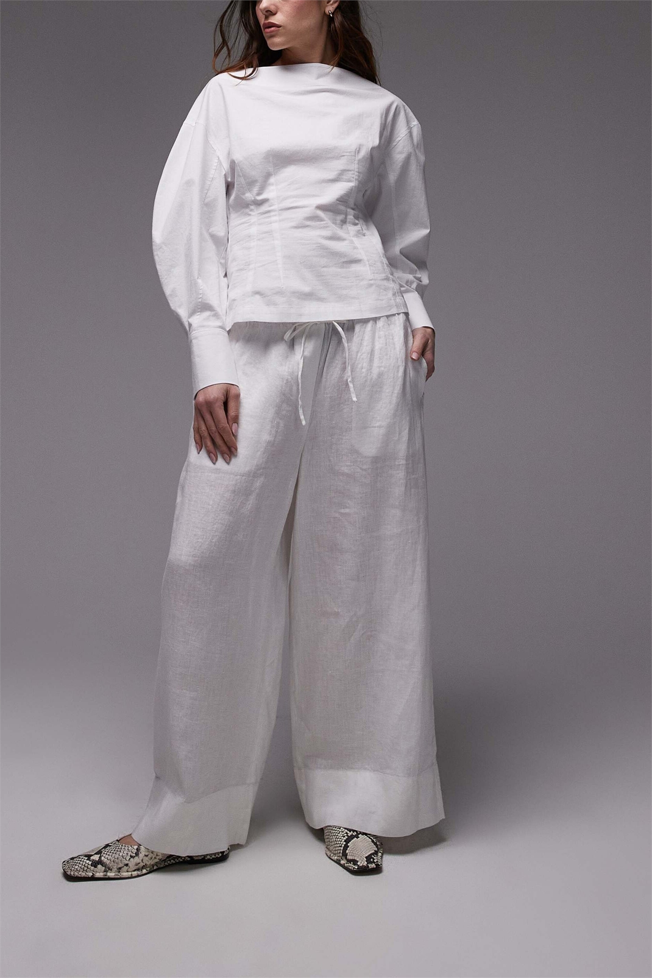 Льняные брюки с завязками на талии