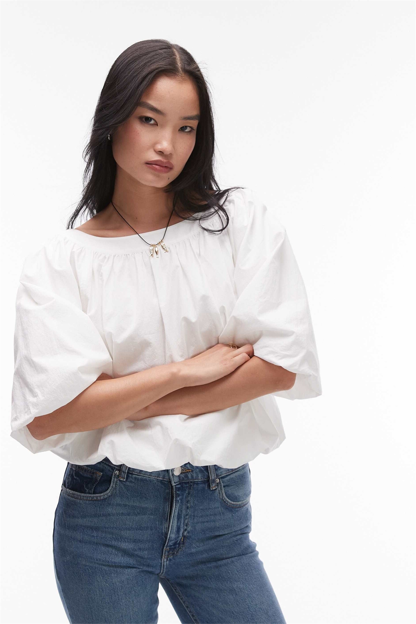 Топ из поплина с волнистым подолом