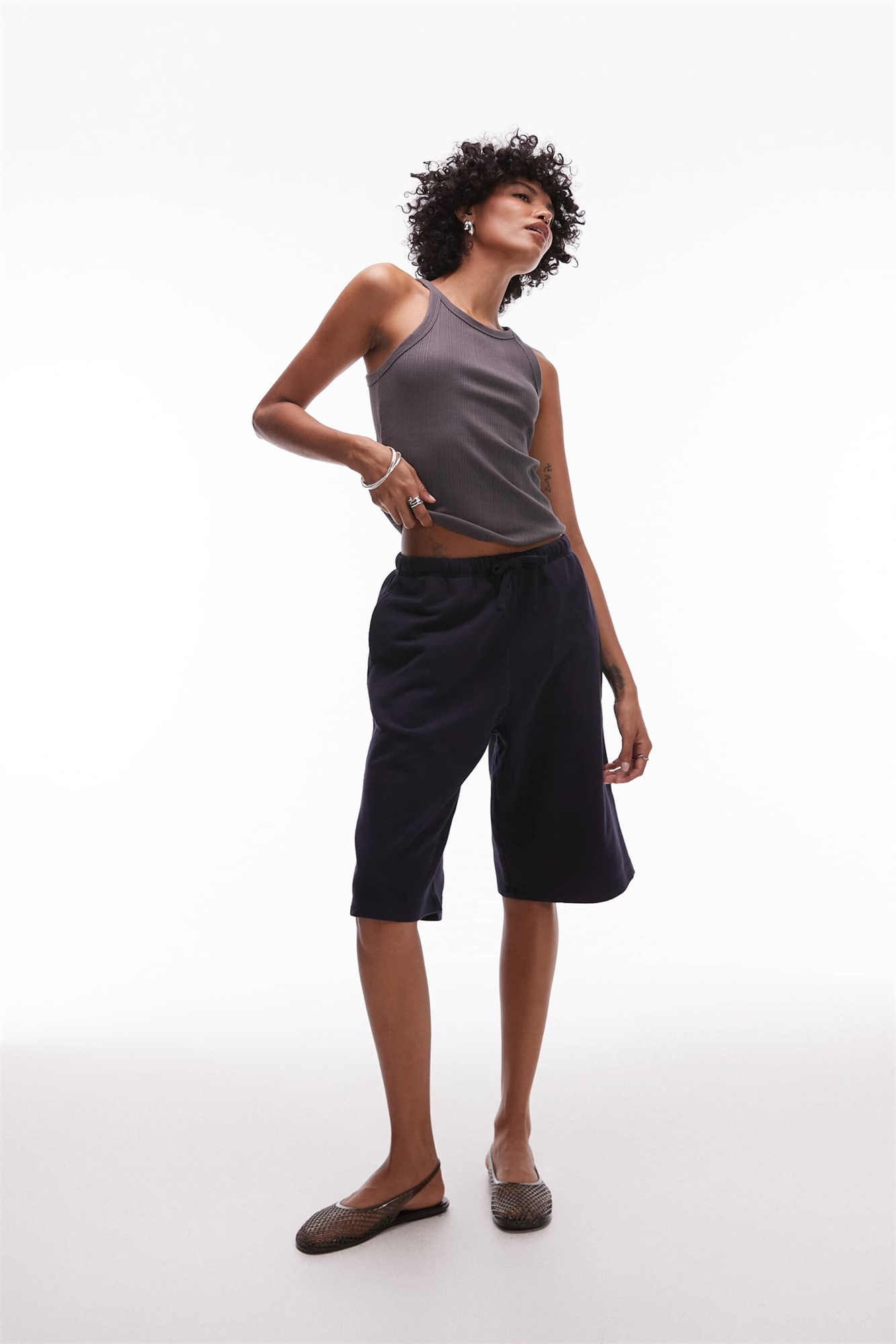 Бермуды из джерси с завязками на талии темно-синего цвета
