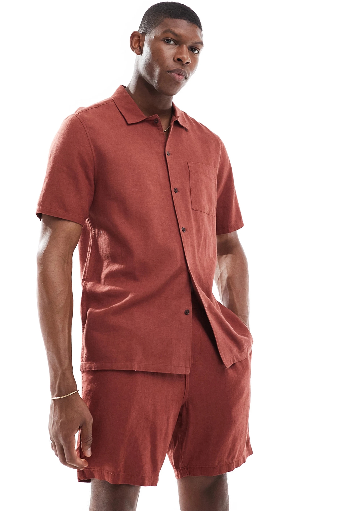 Рубашка с плоским воротником из смесовой ткани с содержанием льна co-ord