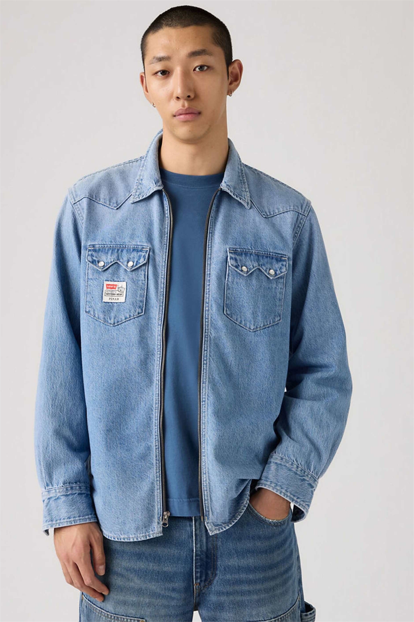 Неэластичный деним: светло-голубой оттенок Основной материал: 100% хлопок.