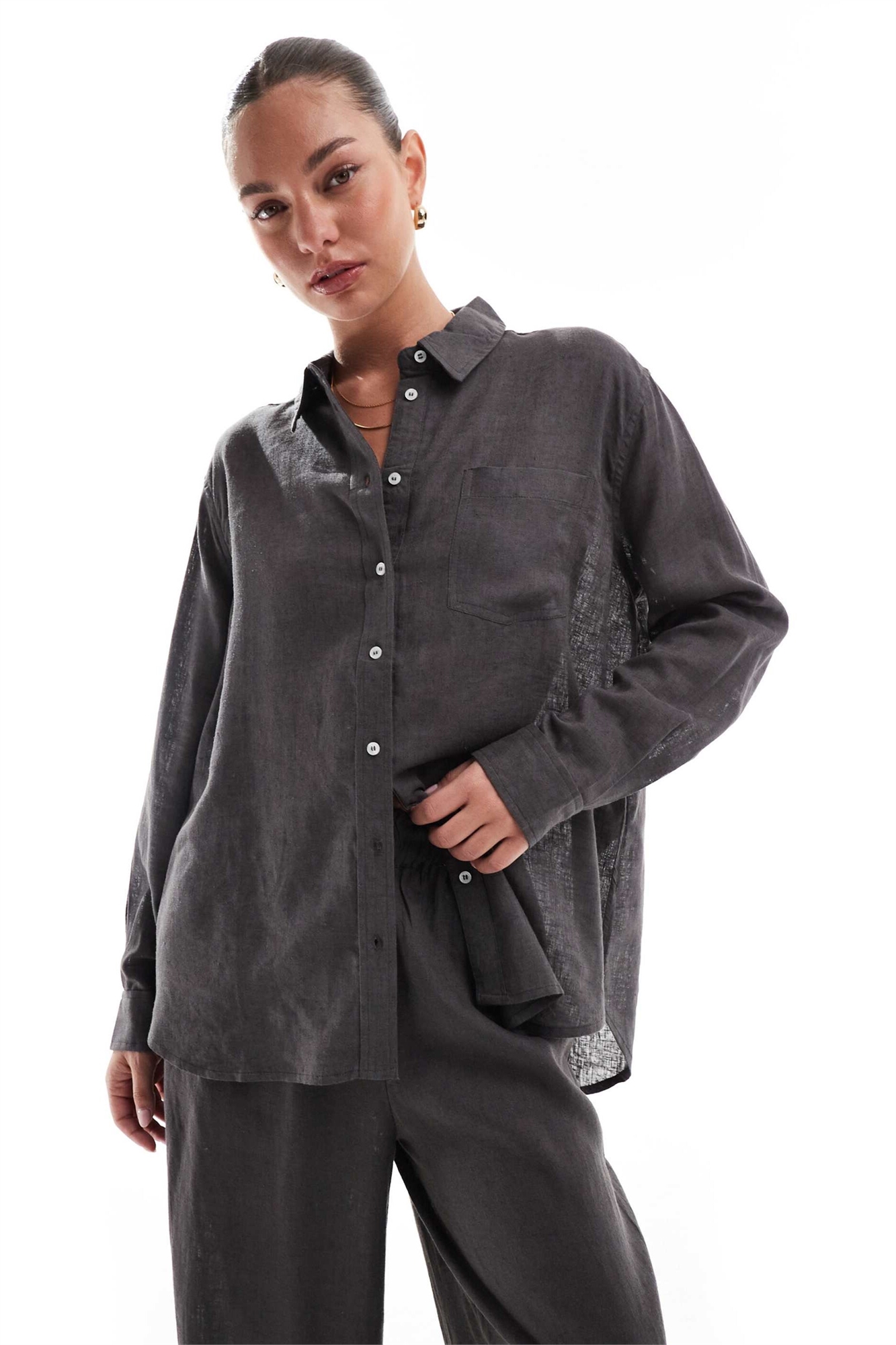 Рубашка свободного кроя из смешанного льна co-ord