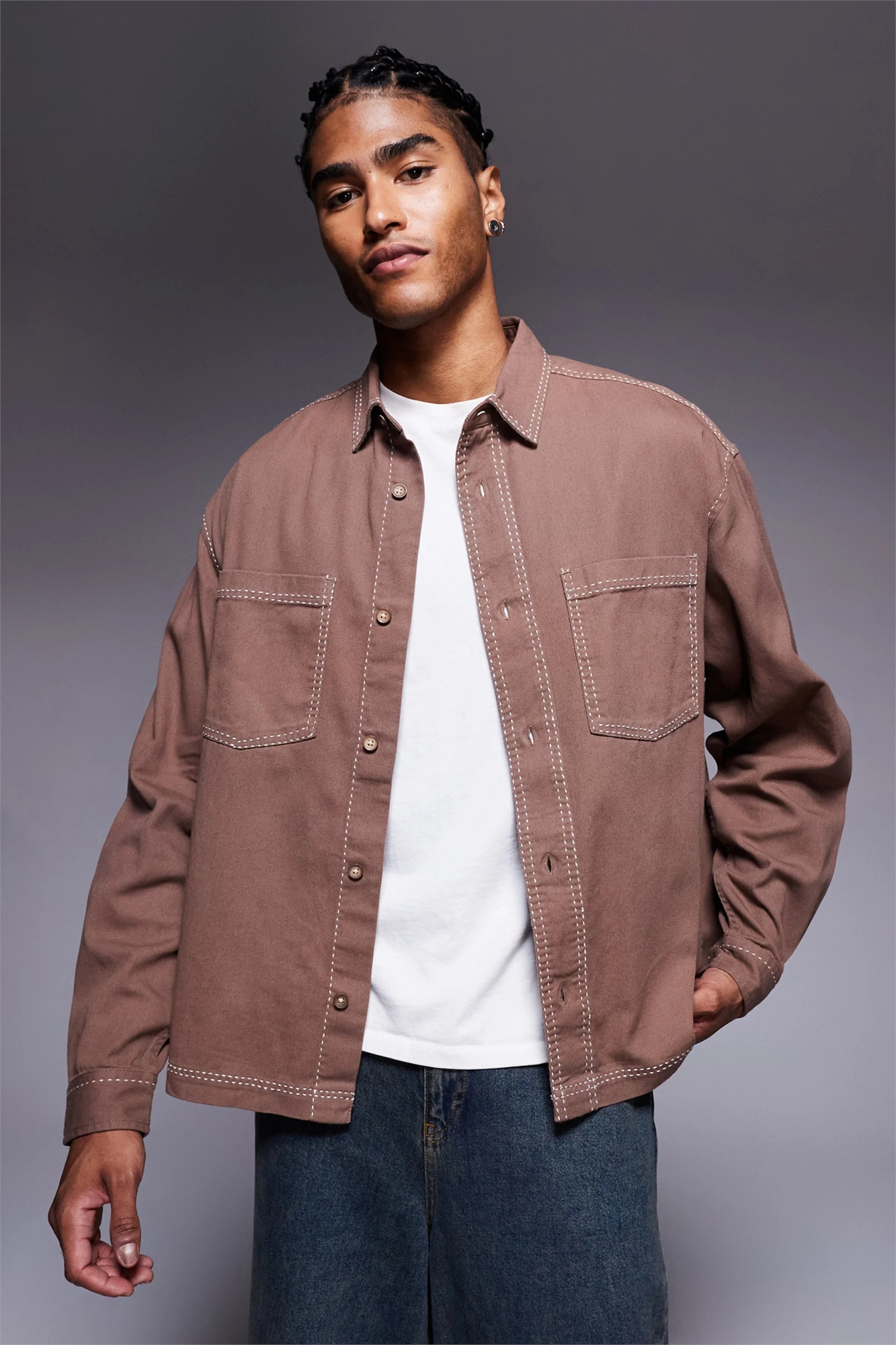 Рубашка с контрастной отстрочкой