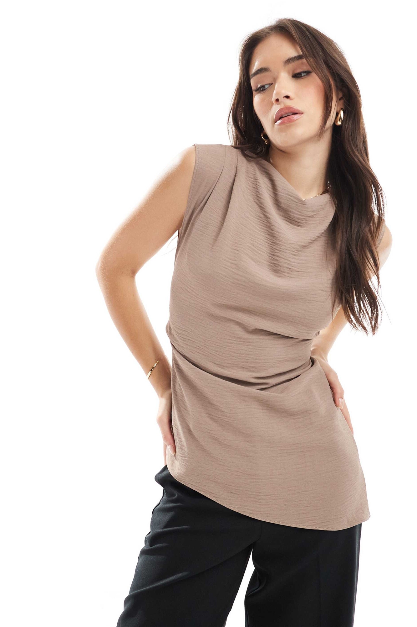 Топ с драпированным воротником-капюшоном и завязками сзади