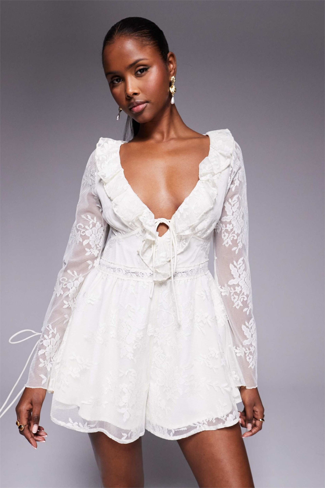 Комбинезон из кружева с рюшами и завязками
