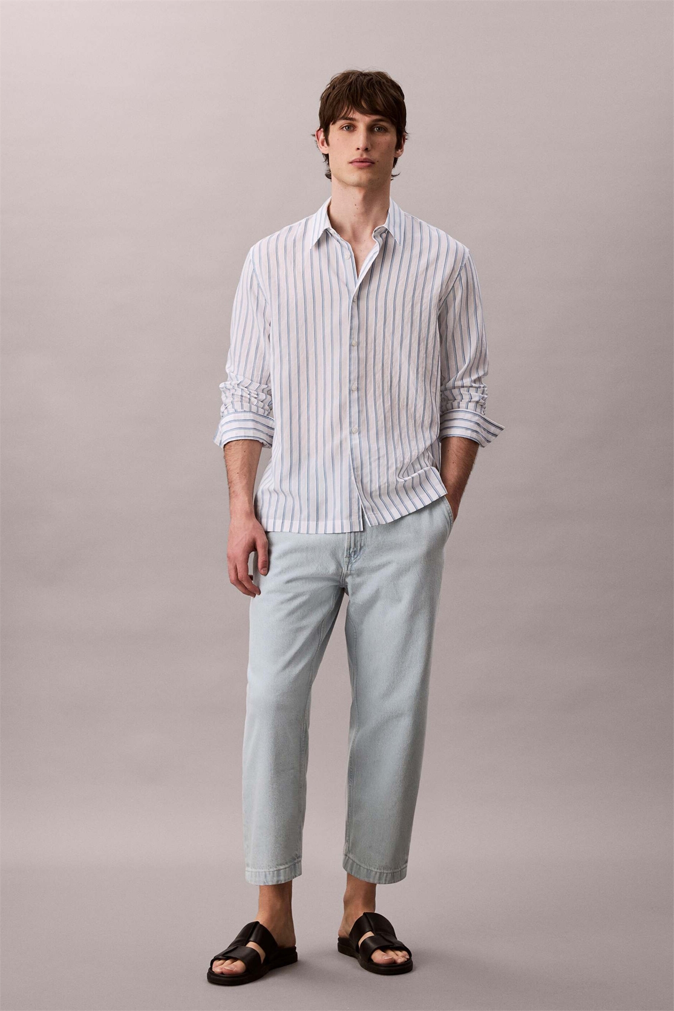 Неэластичный деним: светло-голубой оттенок Основной материал: 100% хлопок.