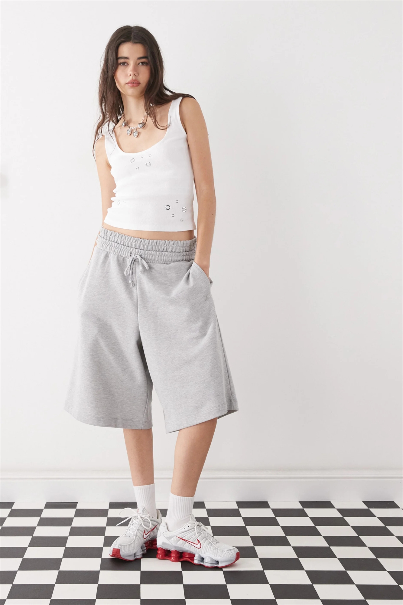 Шорты-джоггеры с длинной талией и двойным поясом