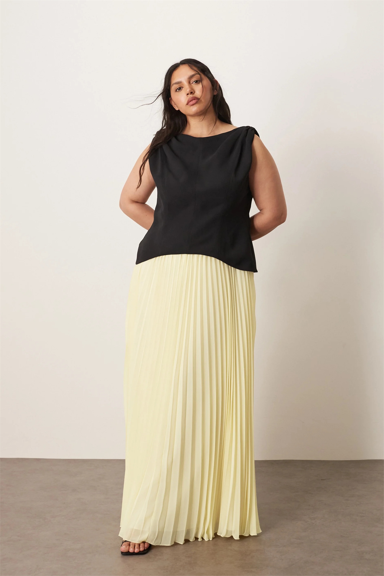 Гибридное макси-платье с закрученной линией талии и складками на плечах