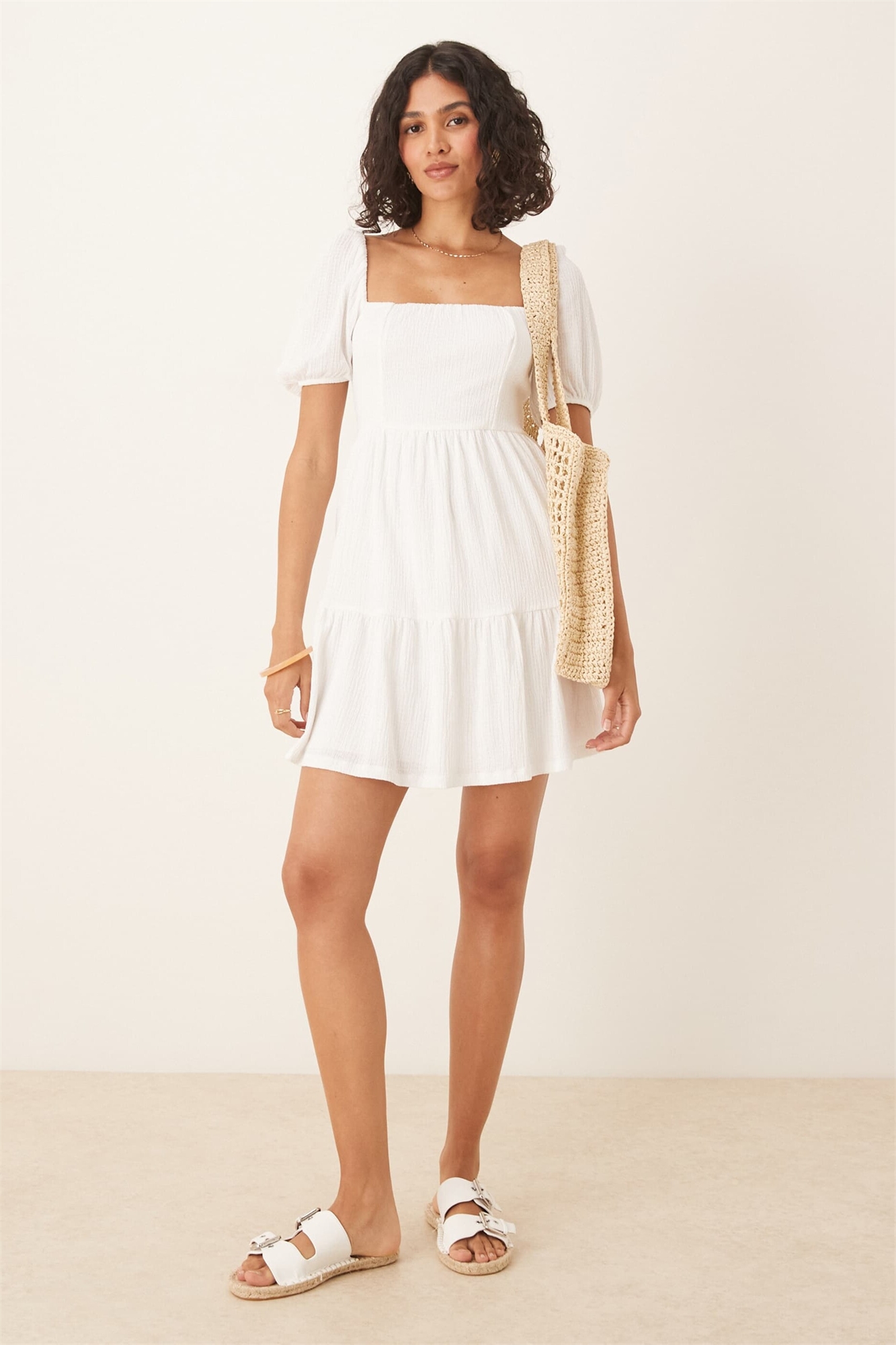 Летнее мини-платье с короткими рукавами и завязками на спине