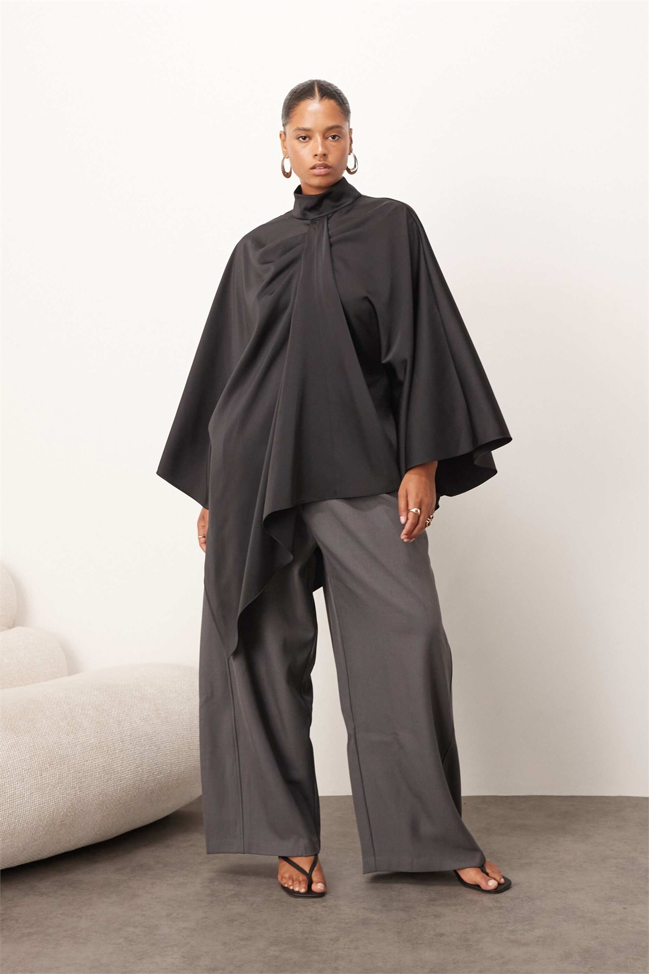 Топ-накидка с высоким воротником и драпировкой